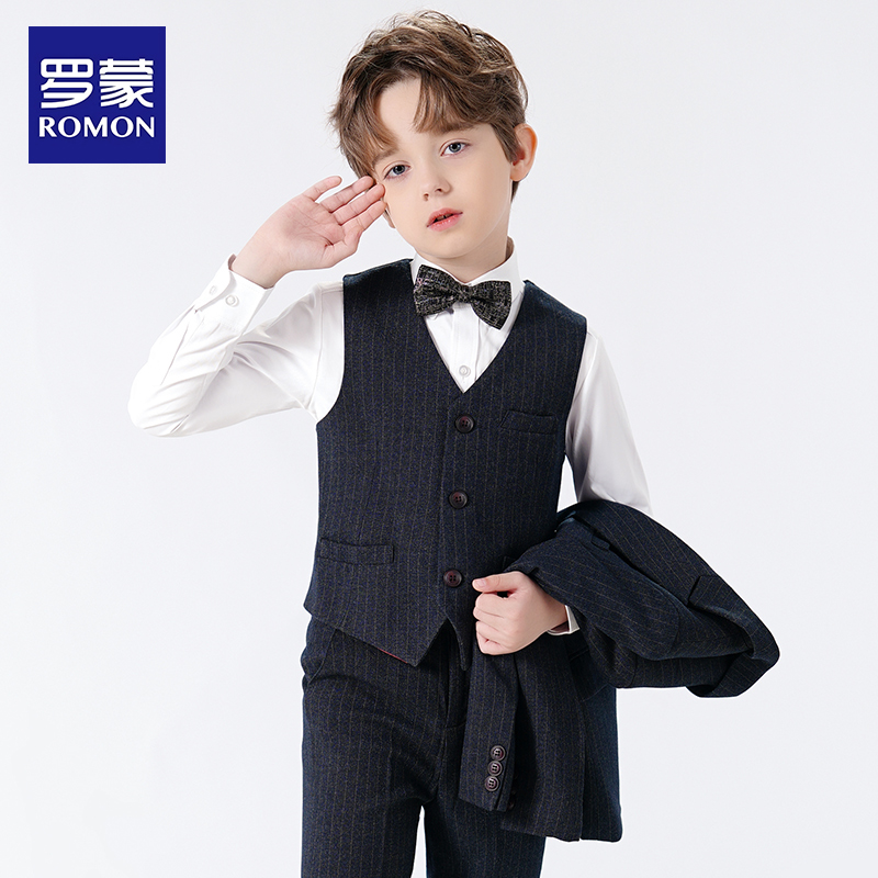 罗蒙儿童西装 小花童男孩钢琴演出主持人礼服帅气外套男童西服 套装