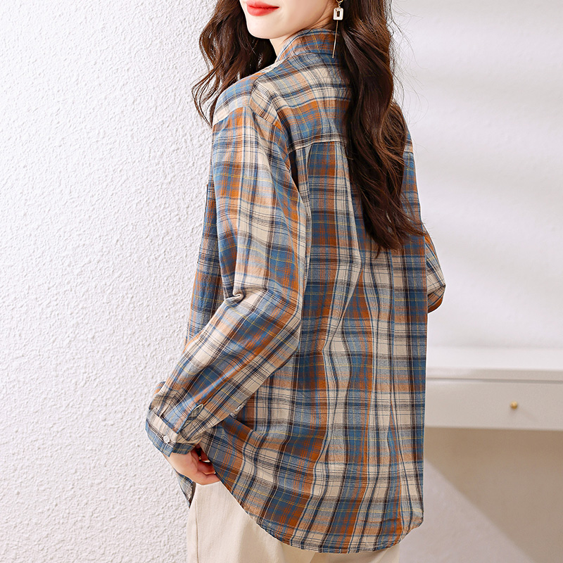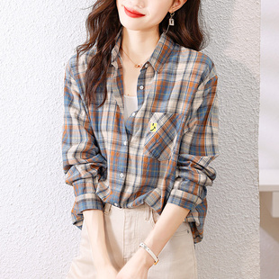 深蓝色软牛仔衬衫 上衣 女秋冬不卷边时髦叠穿衬衣宽松复古港风长袖