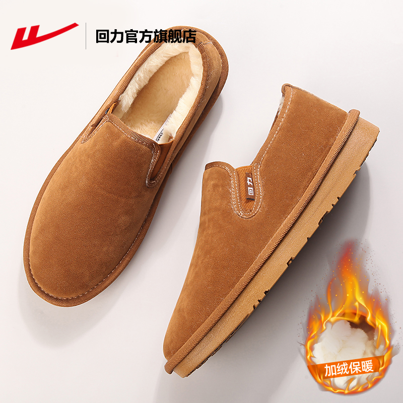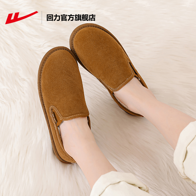 保暖居家老北京雪地靴女 加绒一脚蹬款 回力官方旗舰店棉鞋 子女冬季
