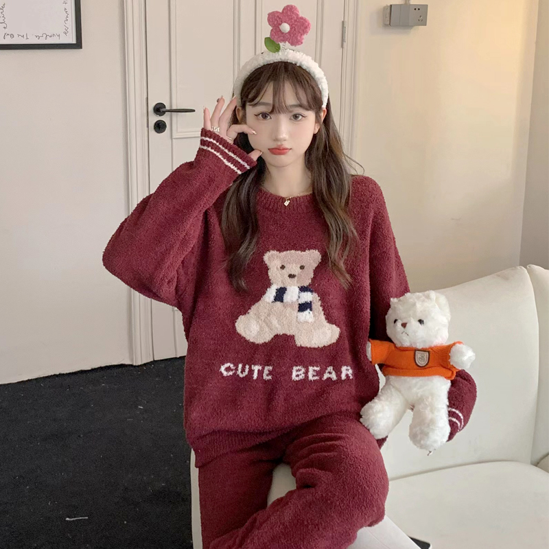 直降358 女 维密宅度假系列暖舒绒睡衣加厚法兰绒珊瑚绒家居服套装