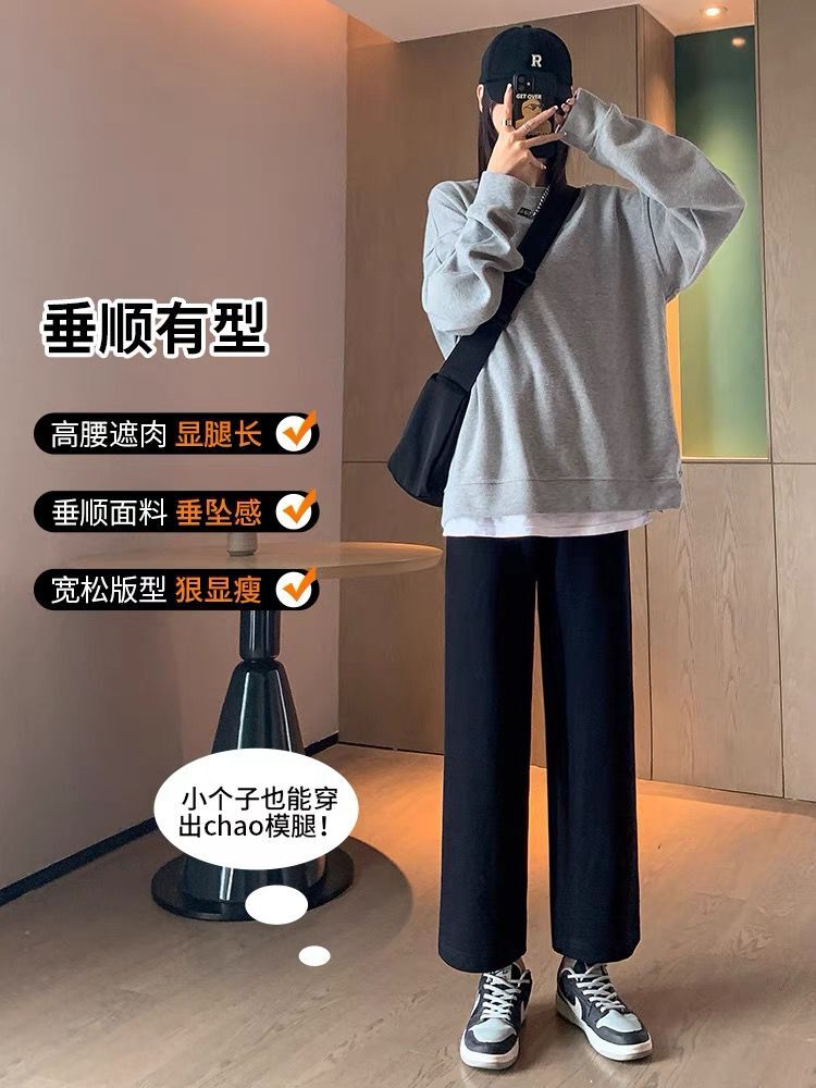 高腰垂感宽松直筒显瘦纯棉小个子休闲卫裤 薄款 女春秋季 阔腿运动裤