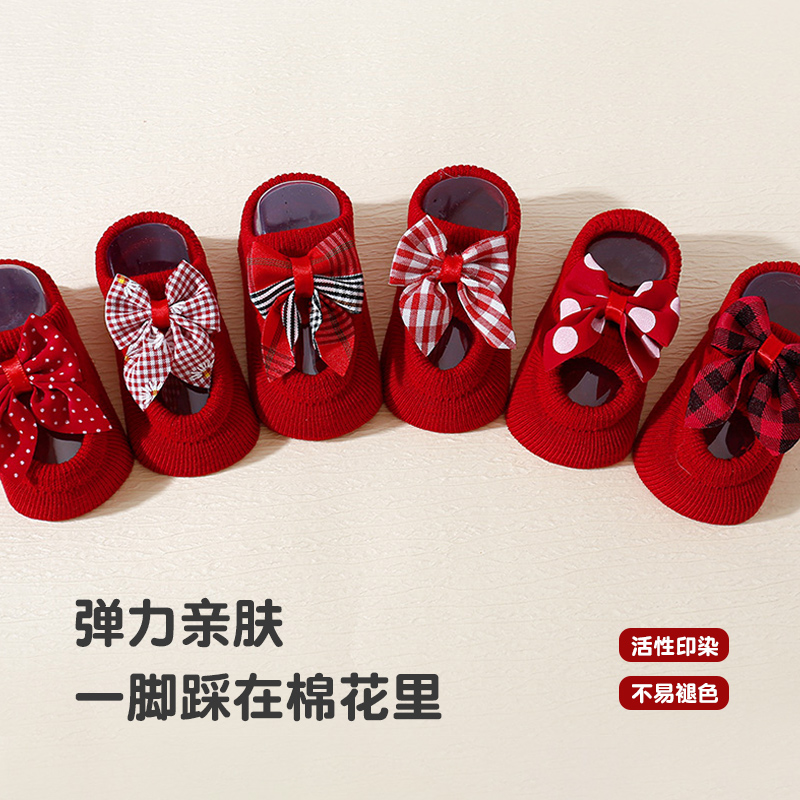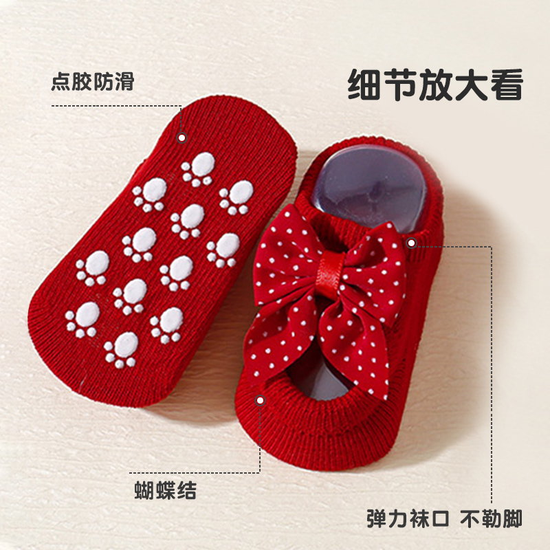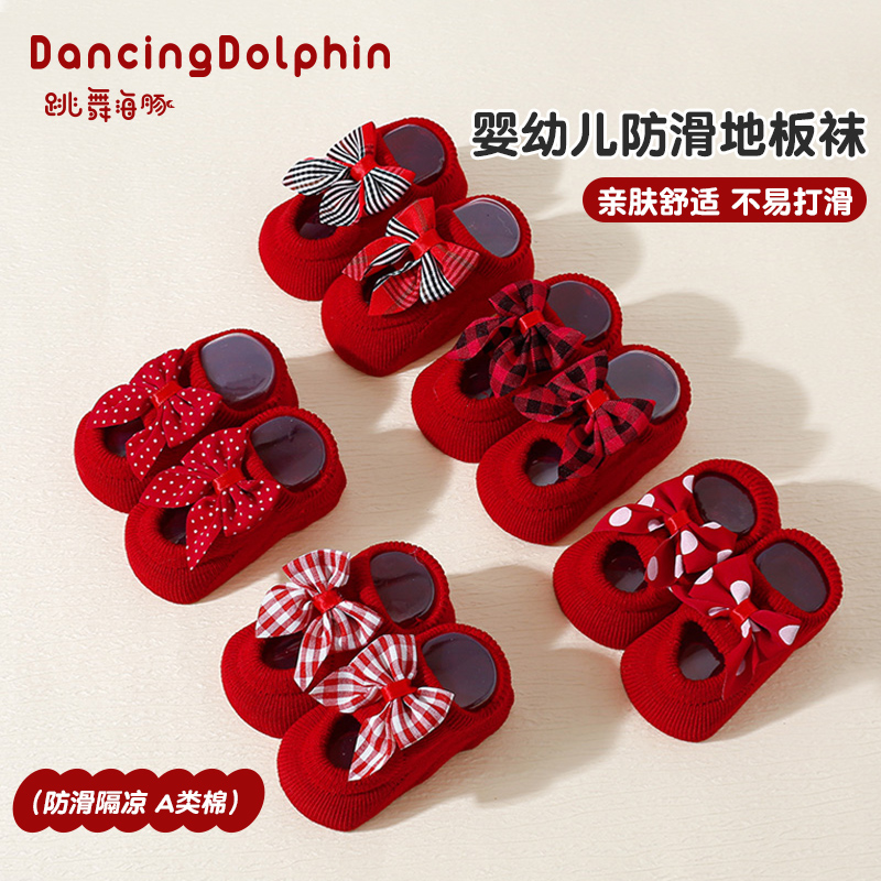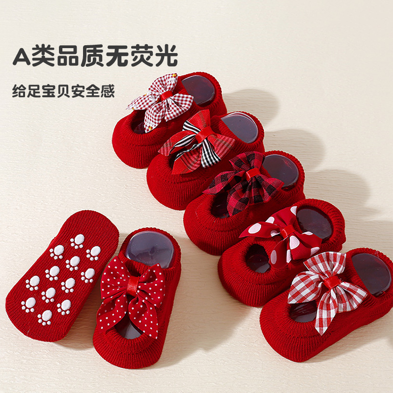 婴儿袜子女宝宝秋冬季 袜跳舞 新年百天周岁红袜子宝宝防滑地板袜鞋