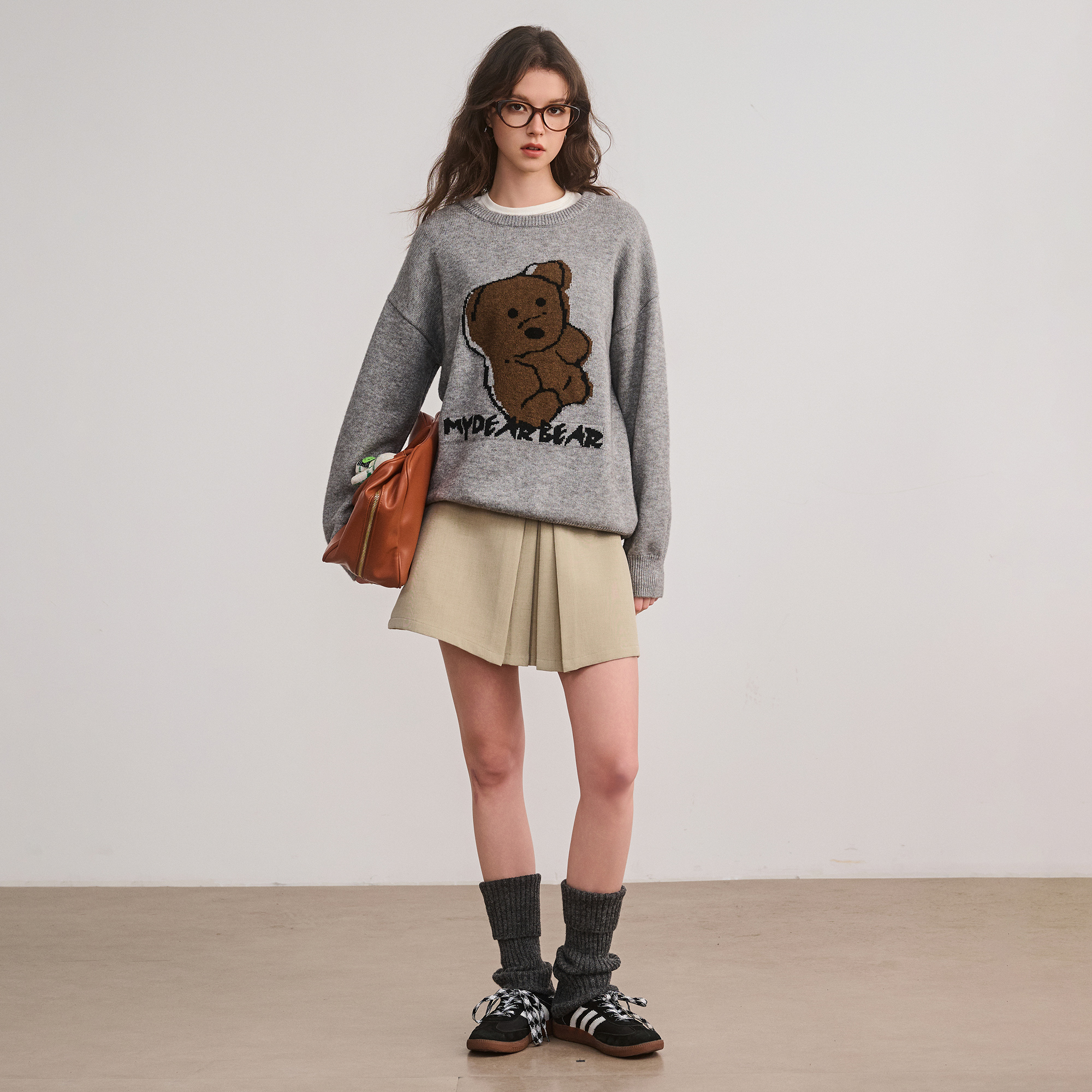 TeenieWeenie小熊女装 学院休闲通勤百褶半身时髦格纹毛呢短裙 秋季