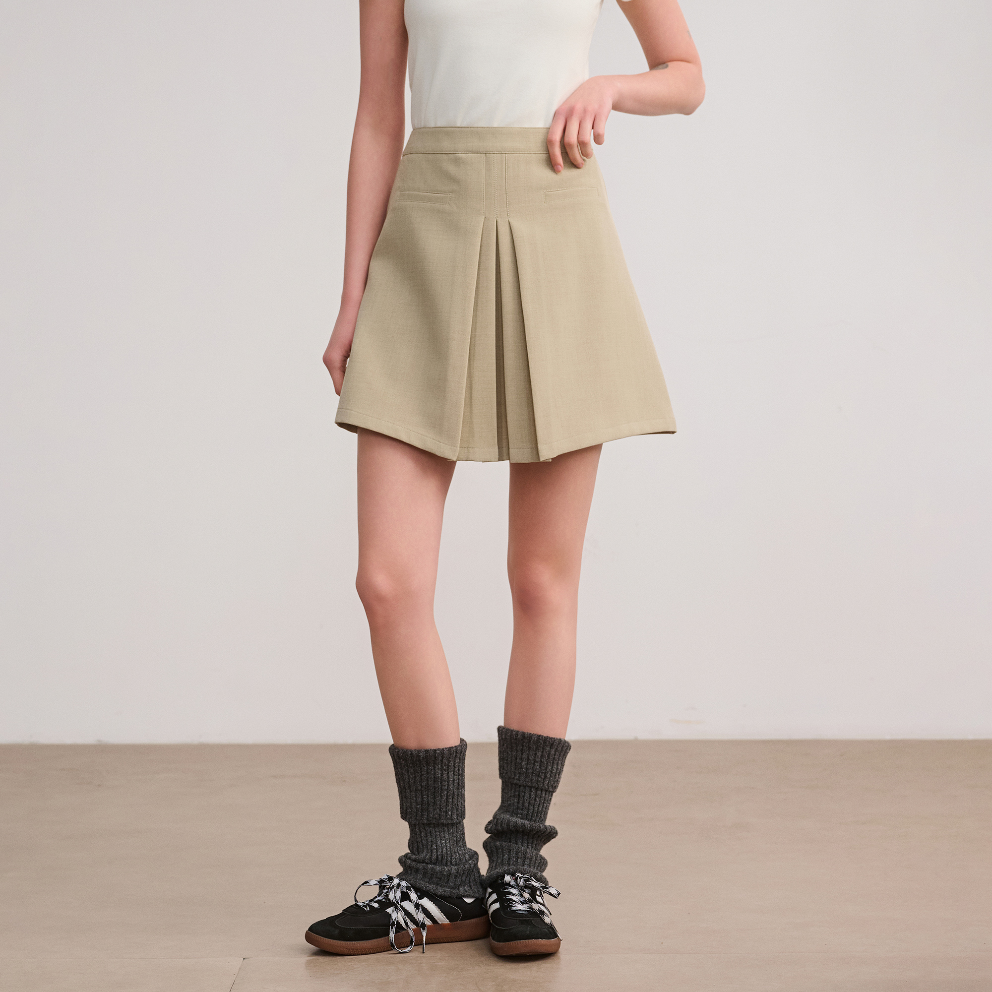 卡其色百褶裙女春秋冬半身裙2025新款 高腰短裙学生毛呢显瘦a字裙