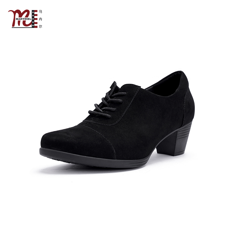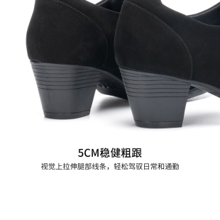 防滑百搭女 休闲黑色软底不磨脚妈妈粗跟高跟鞋 马内尔单鞋 早春新款