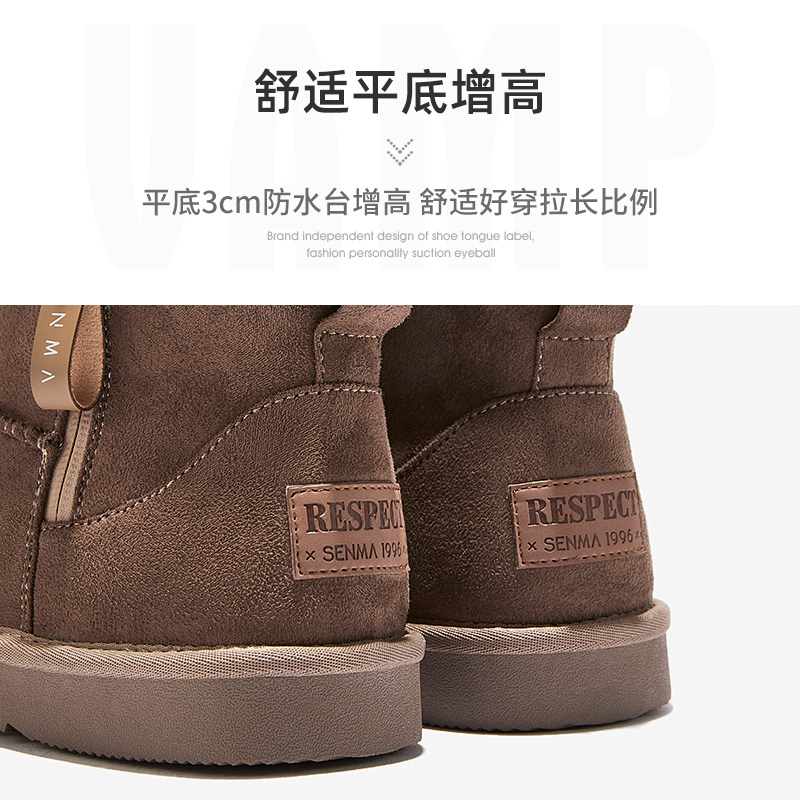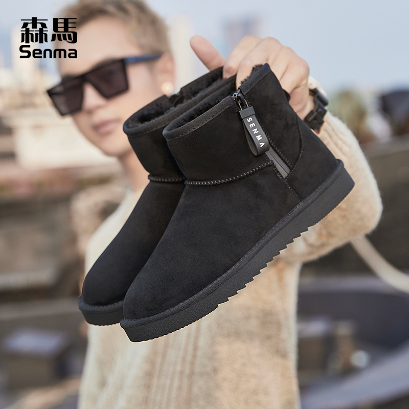 森马雪地靴男青少年加绒加厚防水轻便软底防滑中学生鞋 子高筒棉靴