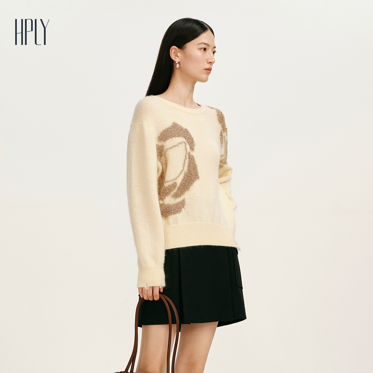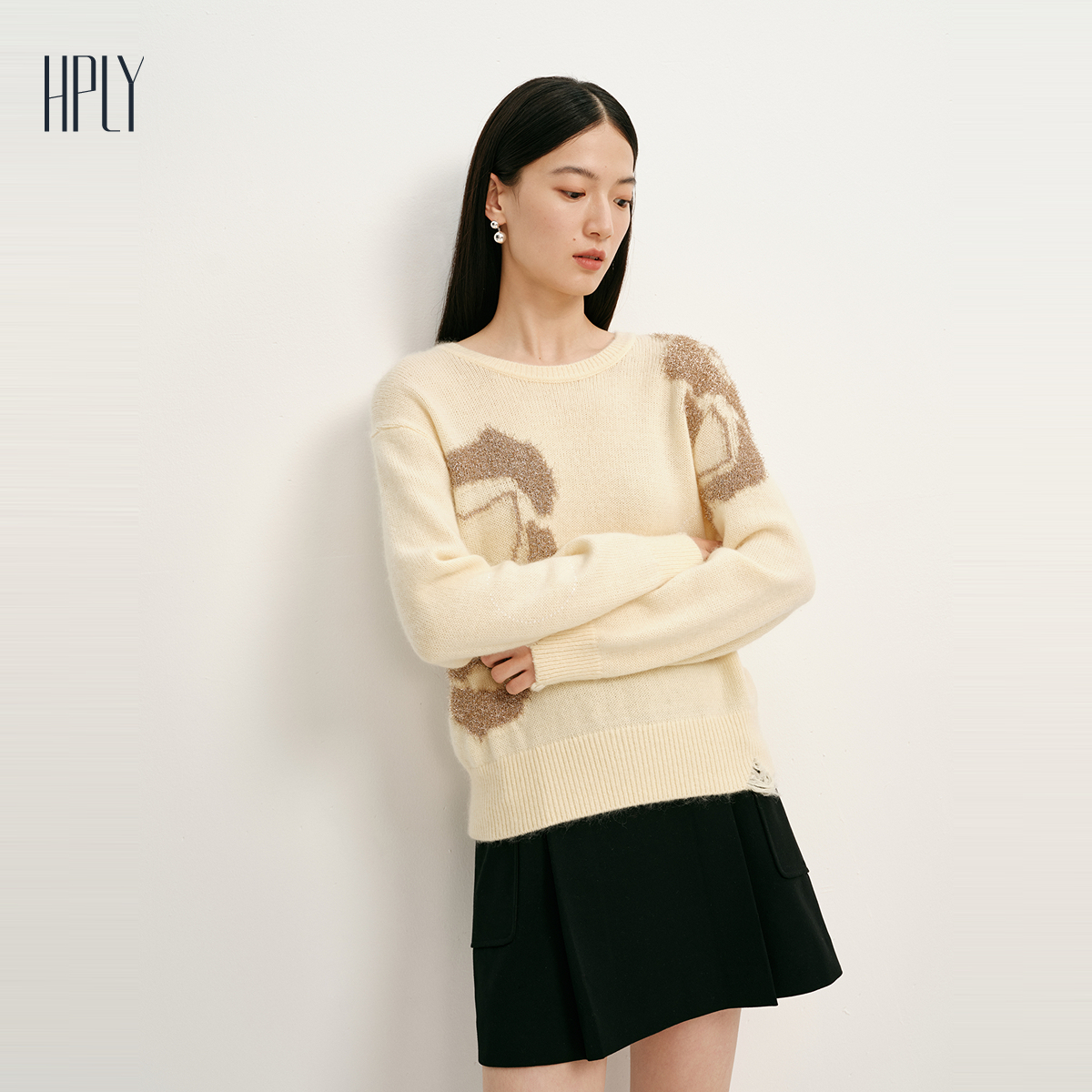 女典雅时尚 新款 HPLY荷比俪2025春季 抽象图案针织衫 商场同款
