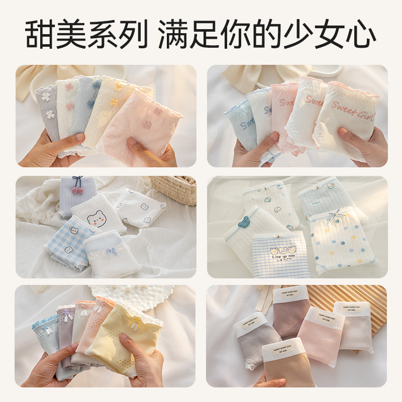 头 衩女柔软透气学生三角裤 少女纯棉内裤 抗菌裆青春期中腰日系短裤