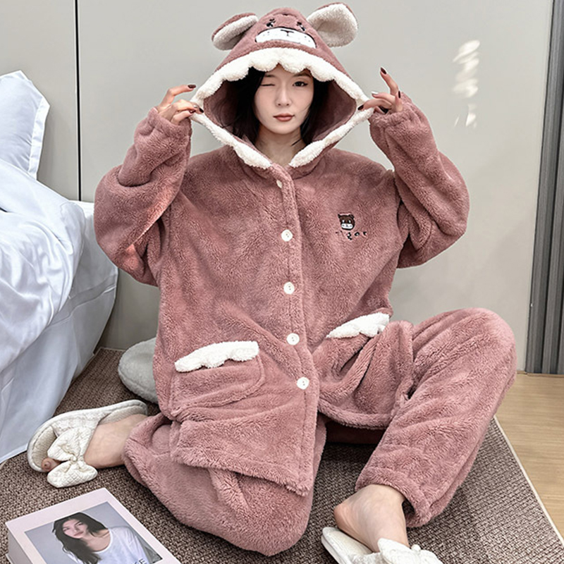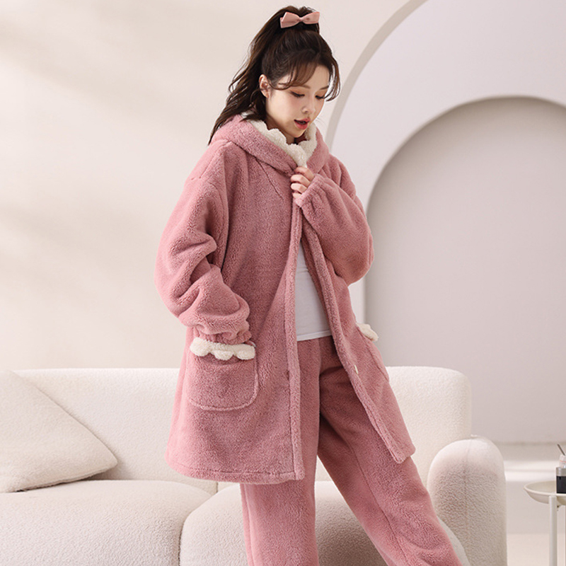加绒加厚家居服200斤可外穿 女胖mm秋冬款 冬季 珊瑚绒保暖睡衣大码