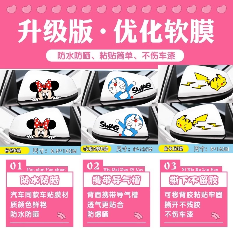 汽车后视镜贴纸卡通可爱划痕遮挡遮盖贴纸创意搞笑倒车镜装 饰车贴