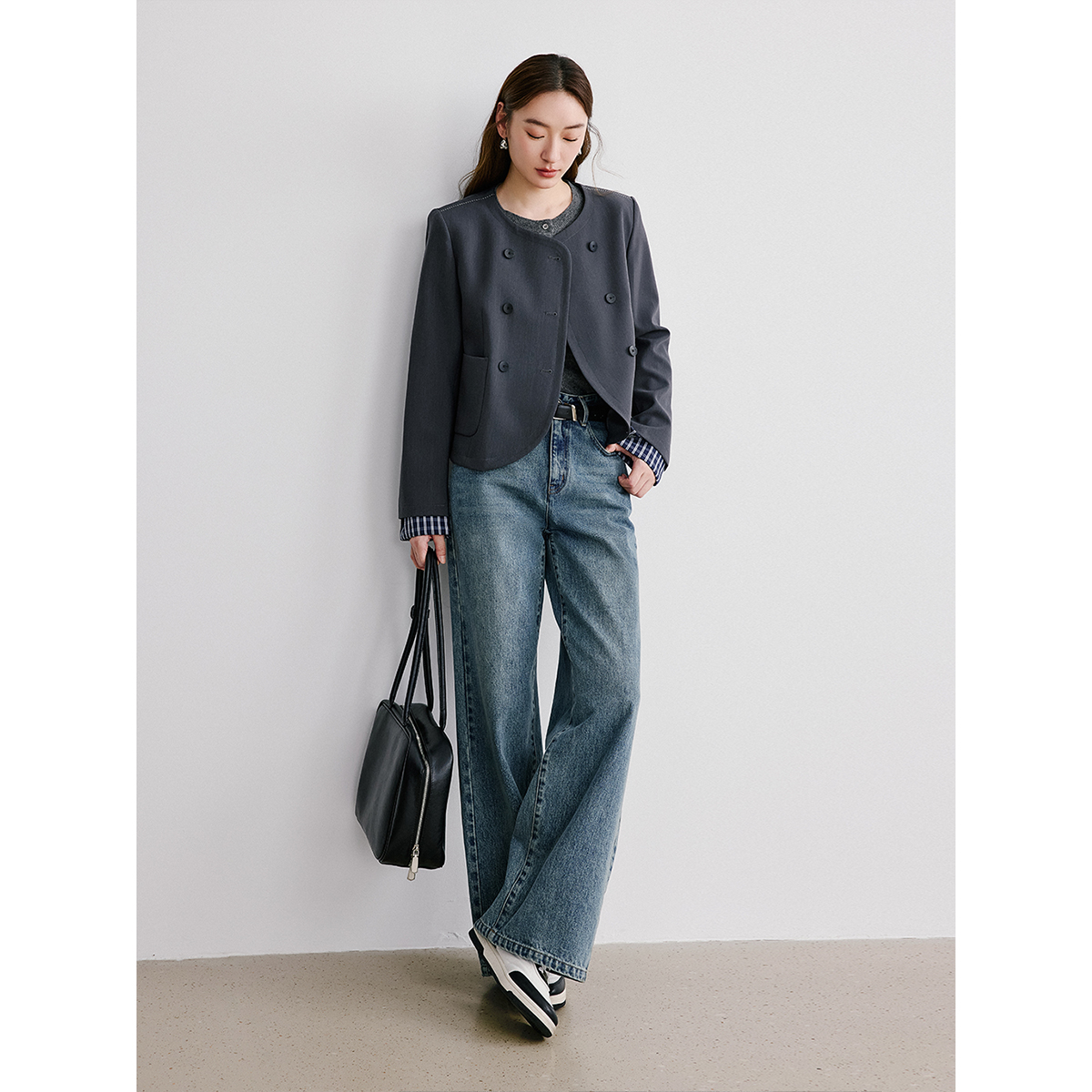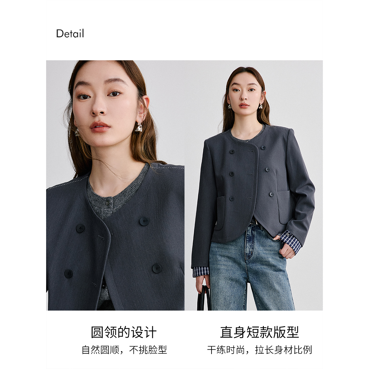 格雷系小个子上衣 时尚 衣香丽影灰色学院风短外套女2025年秋装 新款