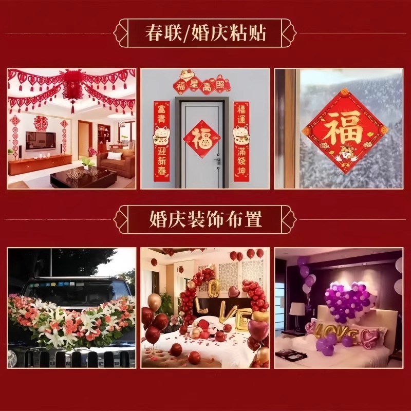 过年2025年对联专用胶透明喜庆胶带无痕强力婚车婚房喜贴双面胶带