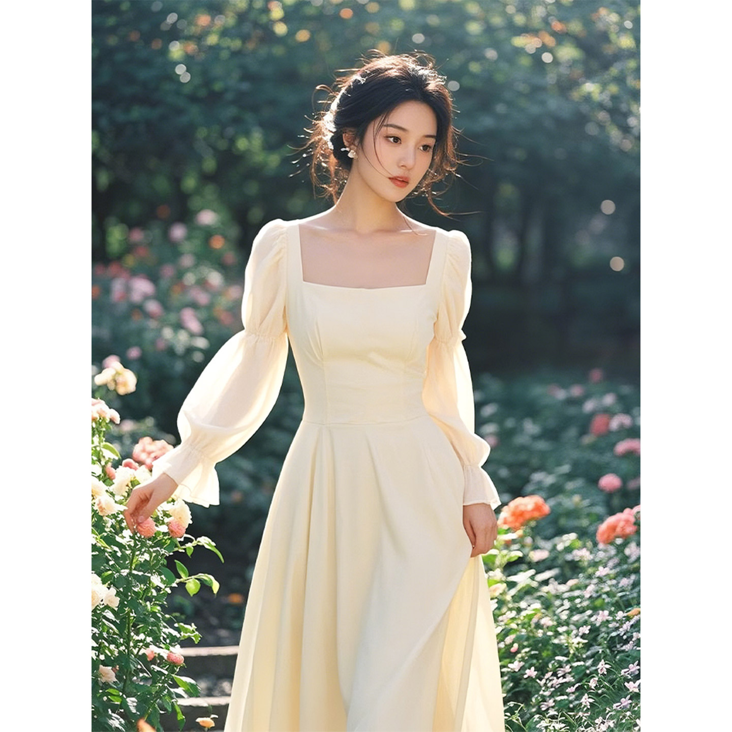 网纱拼接法式 新款 风长裙 连衣裙女2025年秋季 dfvc黑色人丝丝绒长袖
