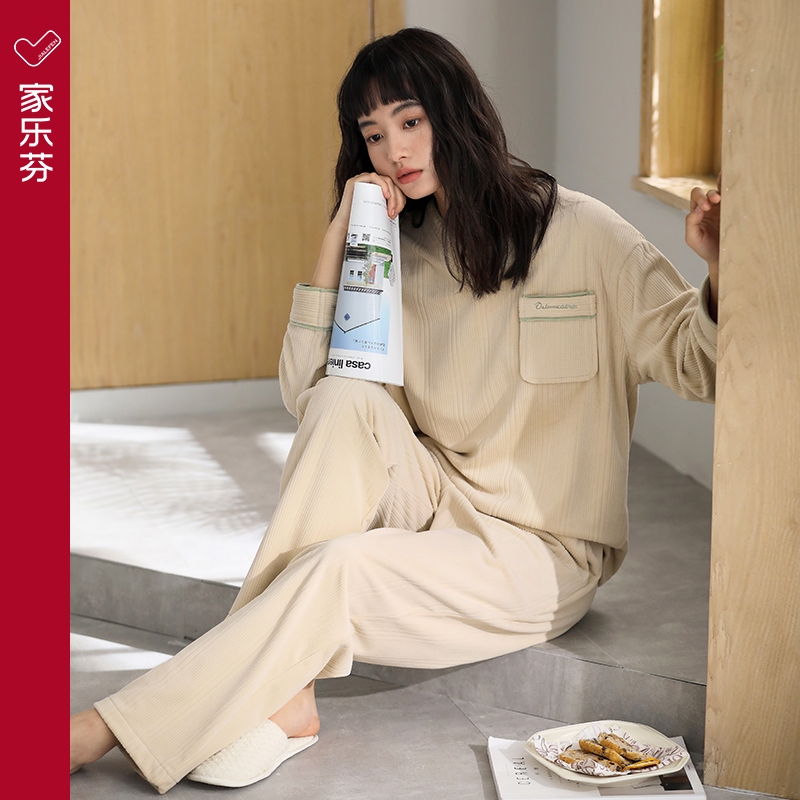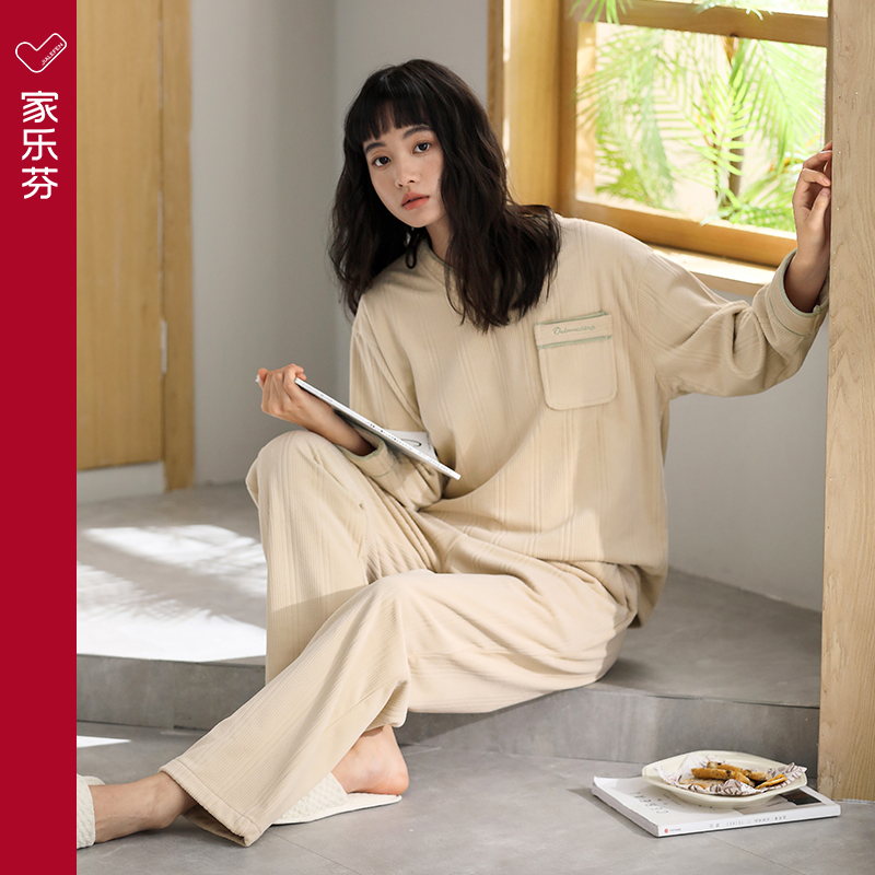 睡衣女士秋冬季 海岛绒法兰绒加厚加绒珊瑚绒家居服休闲可外穿 冬款