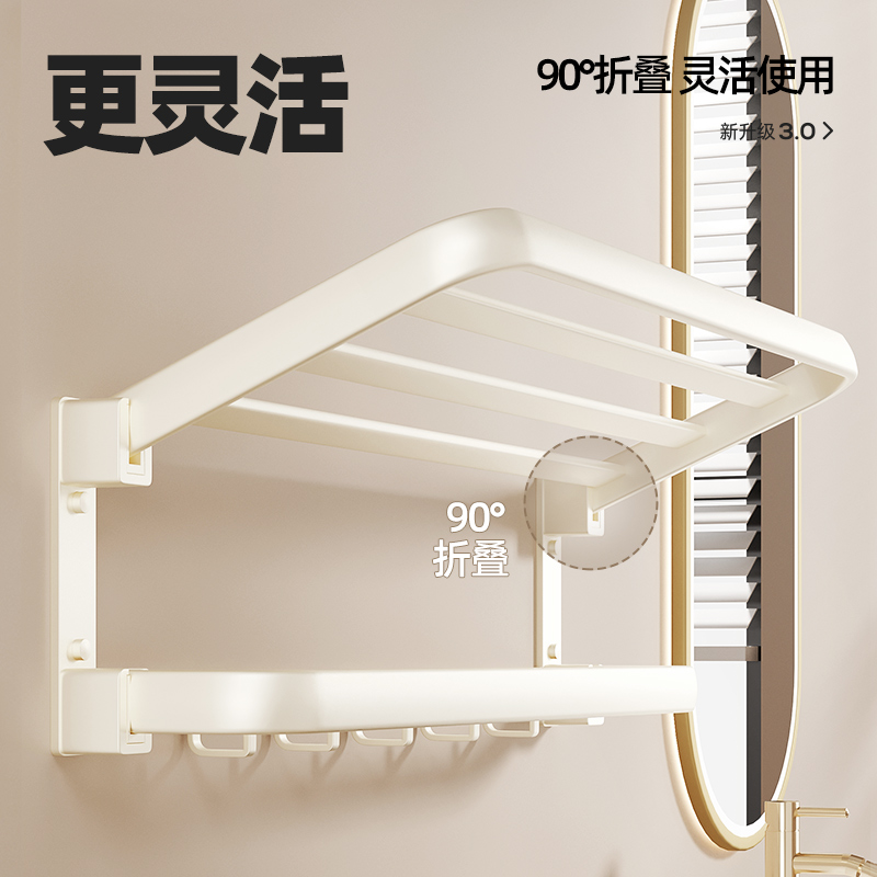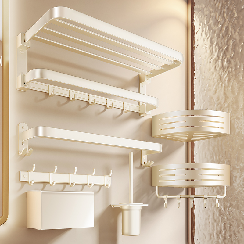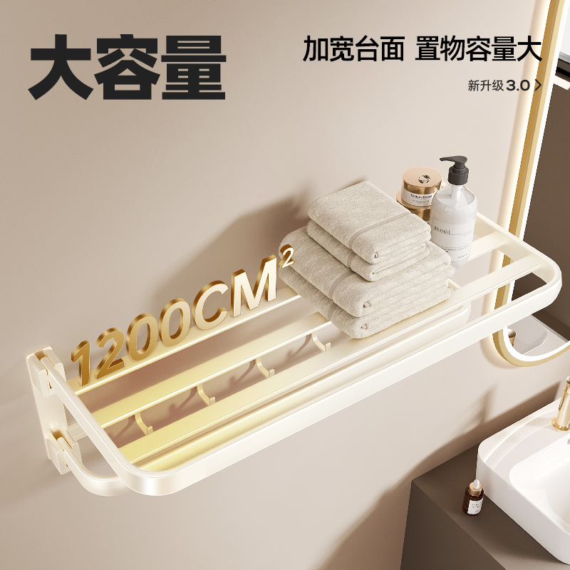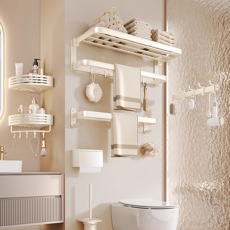 奶油风太空铝毛巾架免打孔卫生间浴室置物架套件洗手间厕所浴巾架
