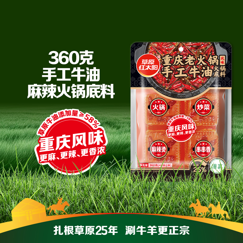 草原红太阳360g牛油火锅底料手工小包装 四川麻辣烫麻辣香锅调味料