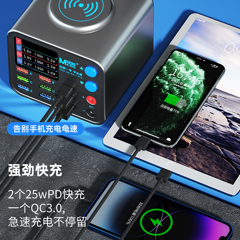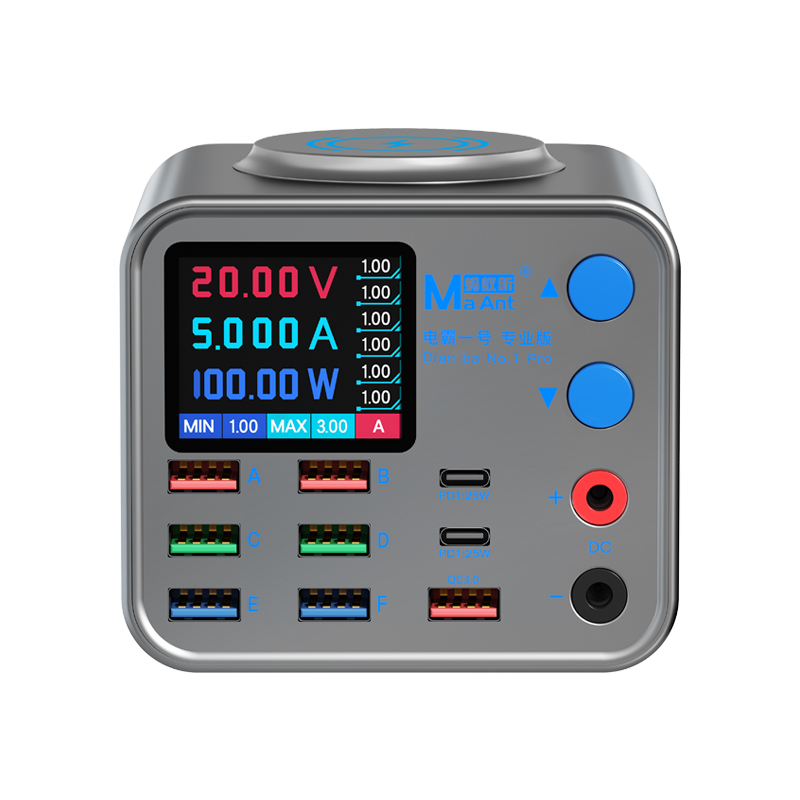 蚂蚁昕电霸一号Pro专业版 USB多口充电器手机维修电源表可调直流稳定电流电压检测仪无线充电数显四合一充电站
