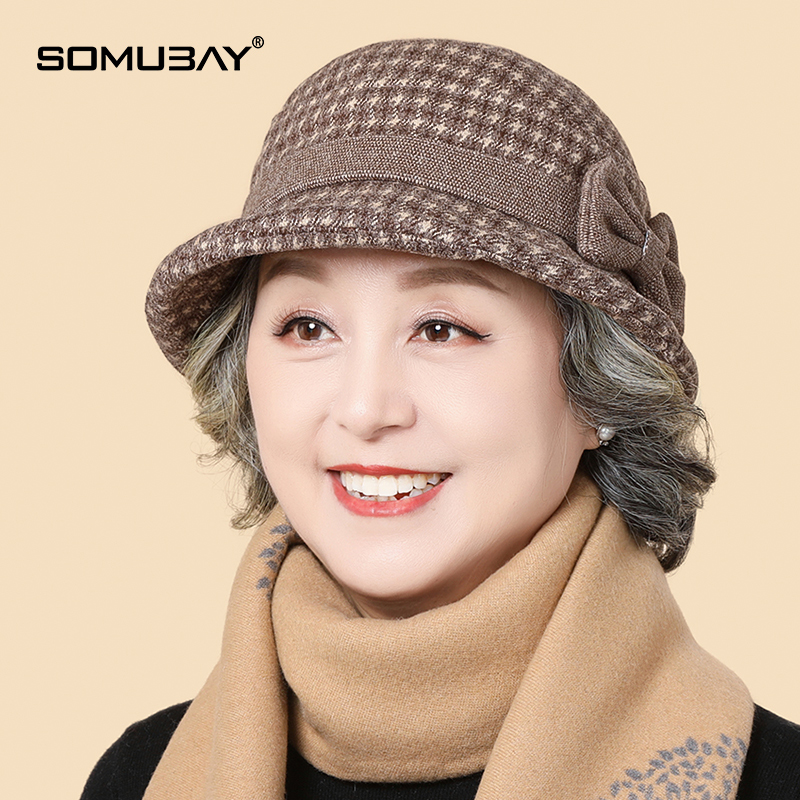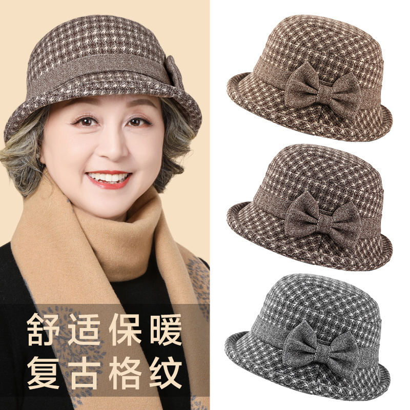 中老年人妈妈帽子女秋冬老太太老人毛呢盆帽保暖洋气外婆奶奶冬帽