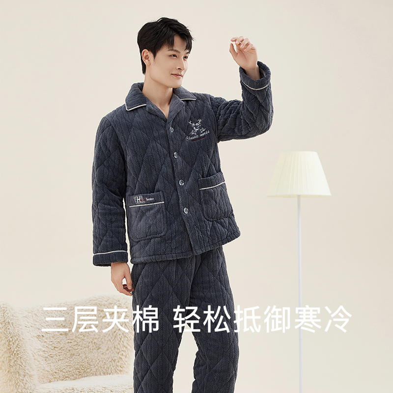 好波男加厚大码 防寒家居服防风可外穿睡衣HJ23134 睡衣冬季