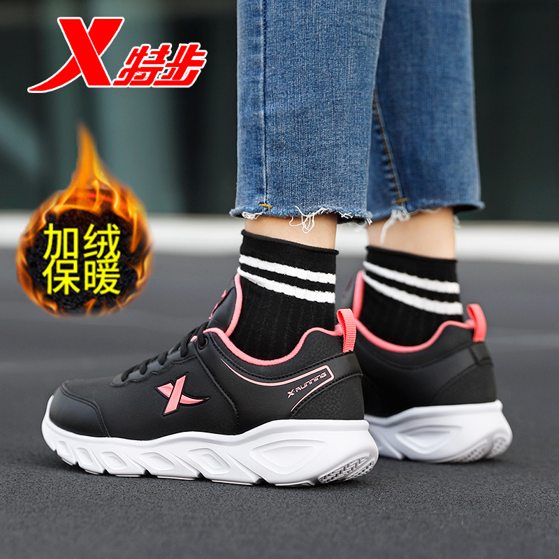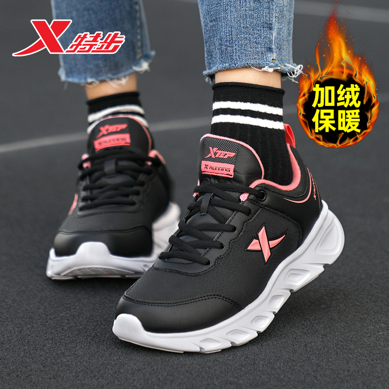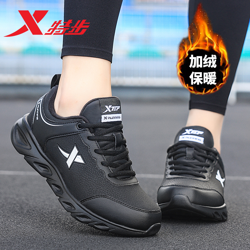 跑步鞋 皮面防泼水软底休闲跑鞋 女鞋 减震运动鞋 秋新款 特步波浪鞋