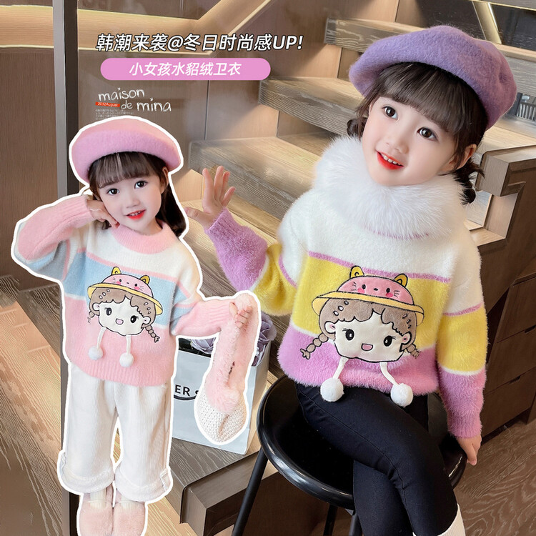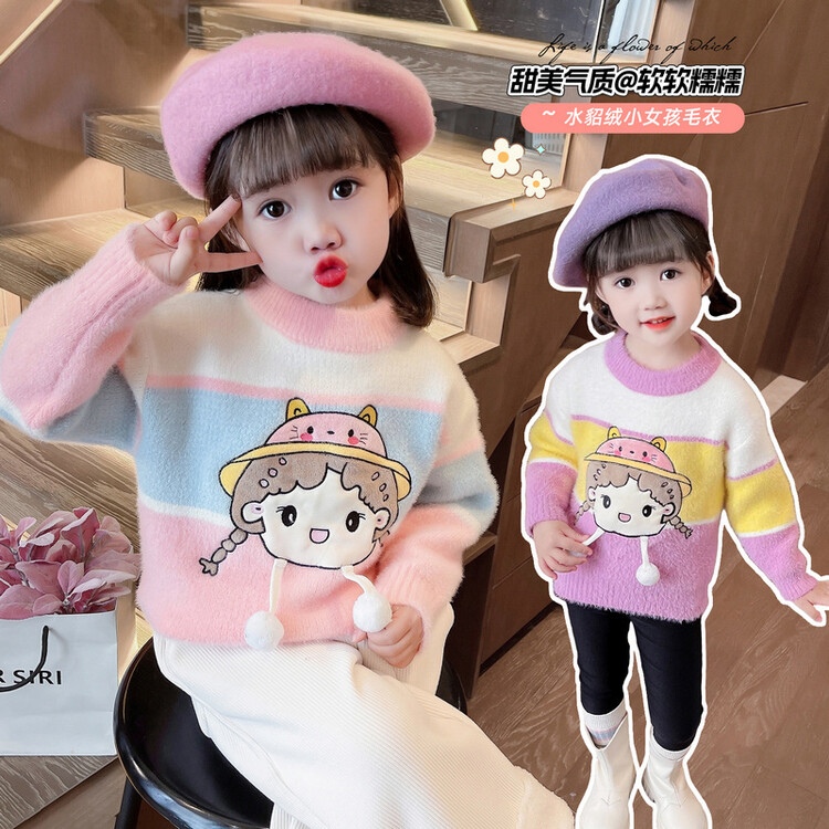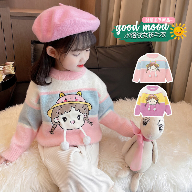 巴拉妮琪balaniqi女童秋冬毛衣卡通洋气女宝宝冬装 加厚针织打底衫