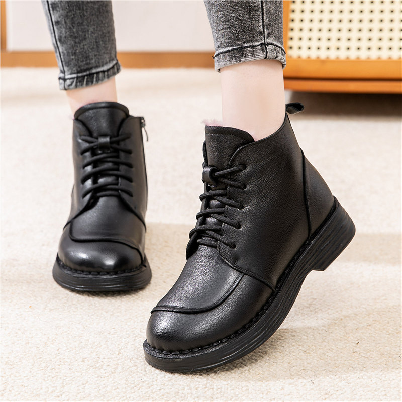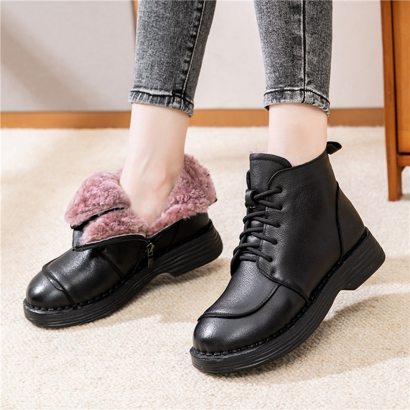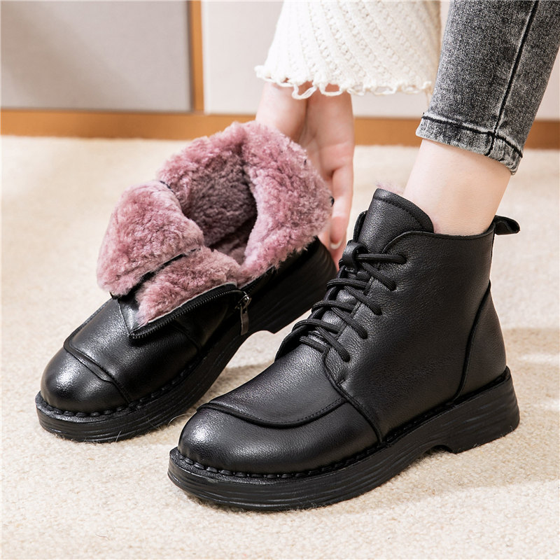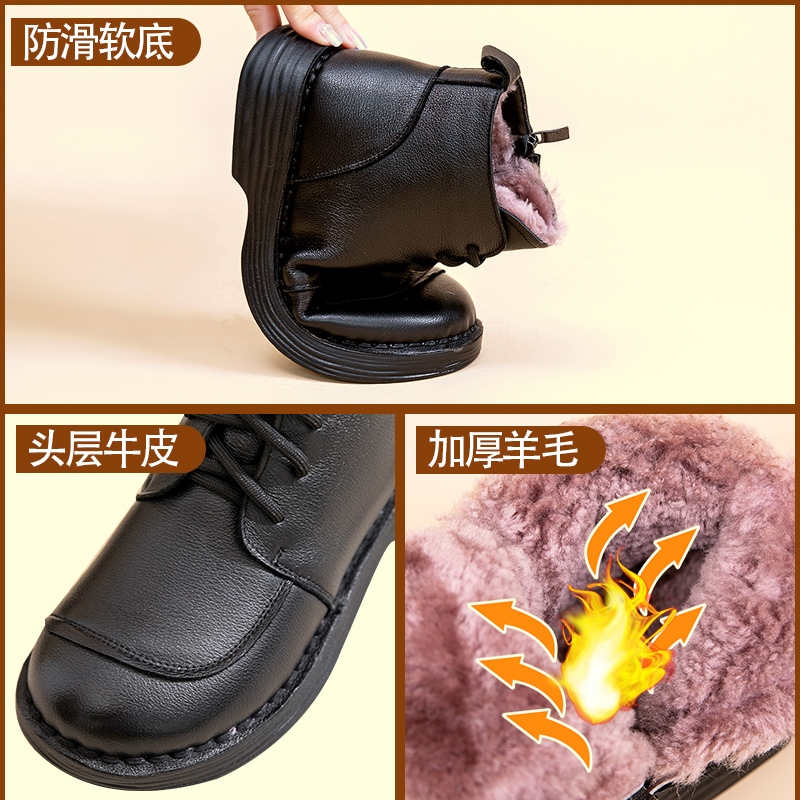 妈妈鞋 真皮女士皮鞋 棉鞋 子女防滑新款 羊毛靴子 加绒中老年人鞋 冬季