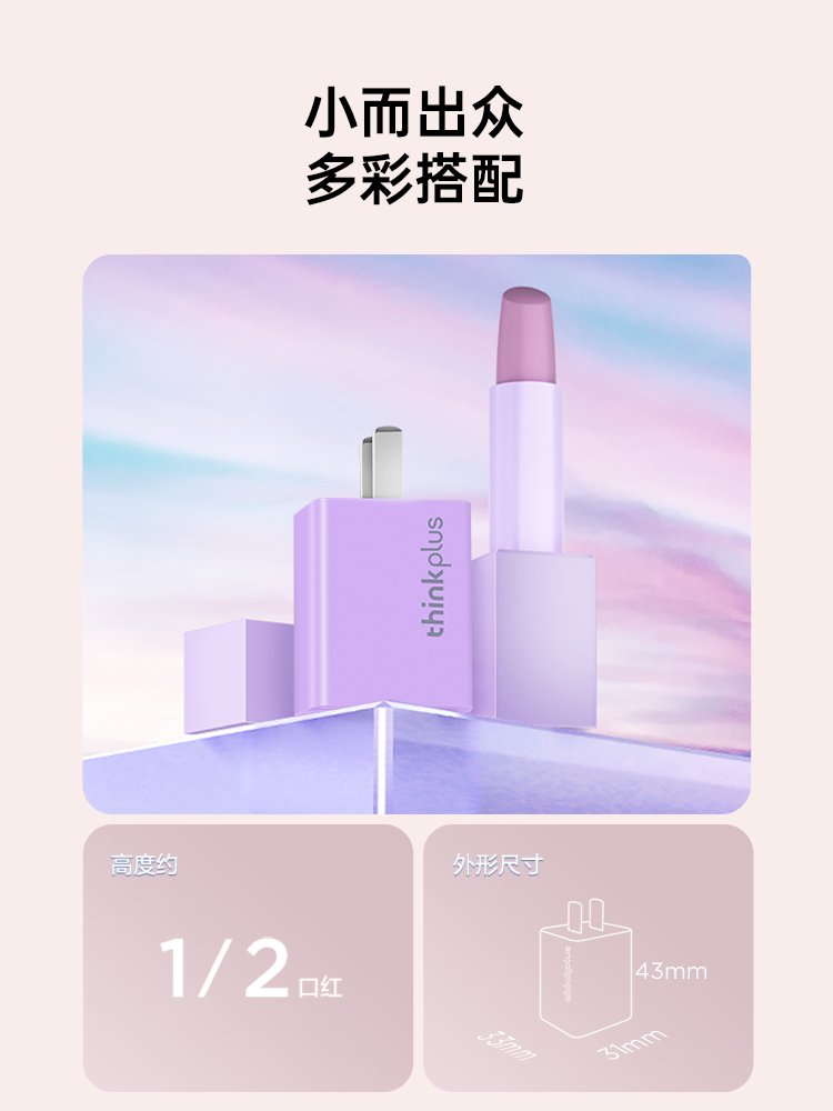 联想ThinkPlus口红电源65W氮化镓充电器PD快充头ThinkPad电脑笔记本适用苹果MacBook手机typec 国家3C认证