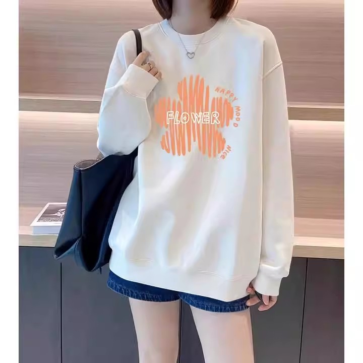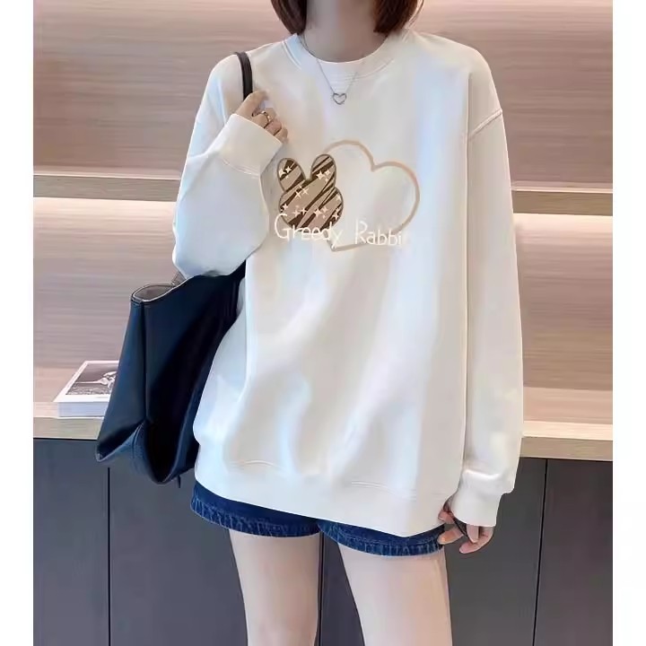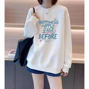 上衣 圆领小个子显瘦休闲宽松大版 白色字母卫衣女2025新款 春秋薄款