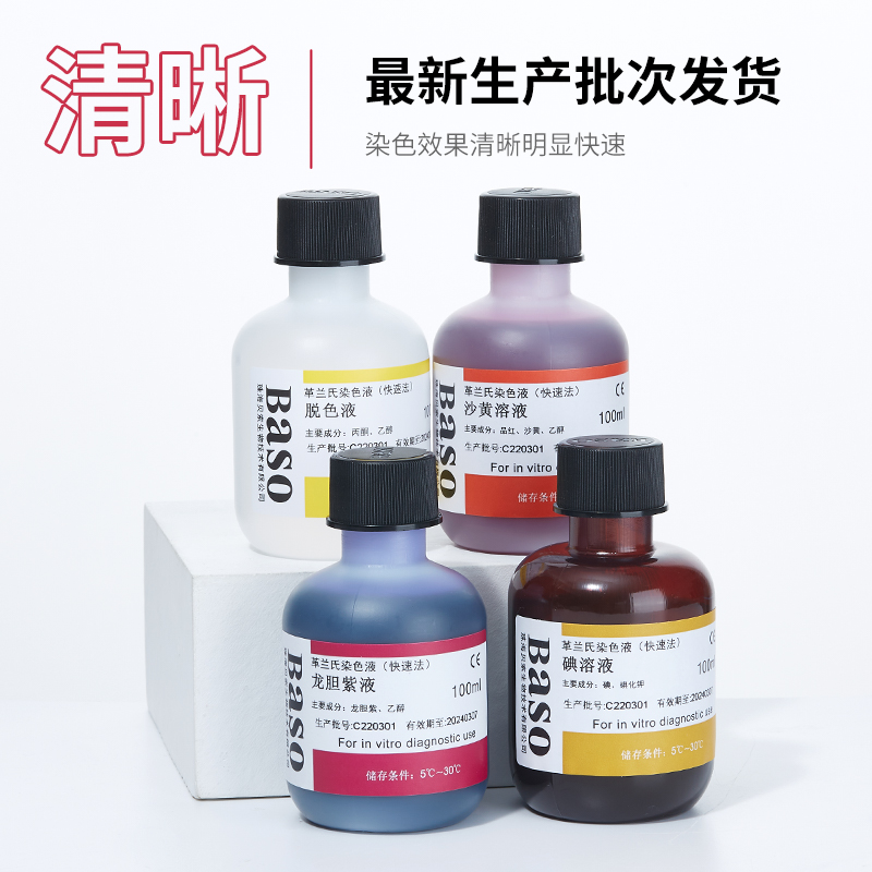 贝索Baso革兰氏染色液试剂盒显微镜用生物染色剂沙黄龙胆紫脱色剂