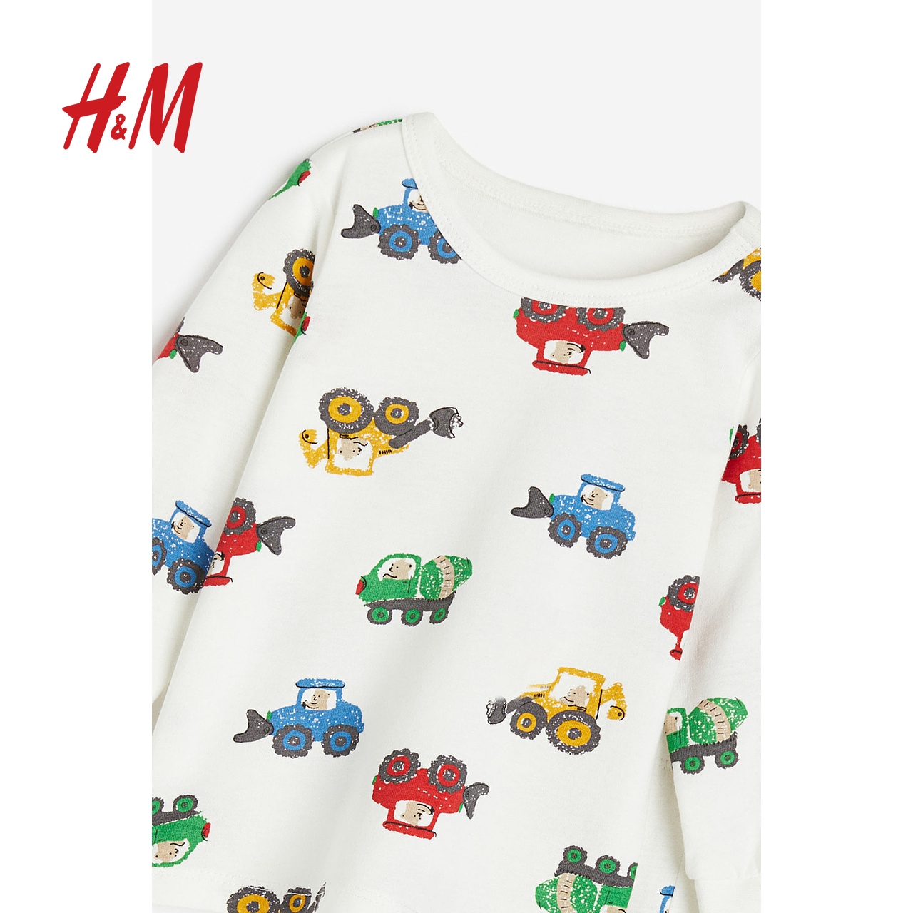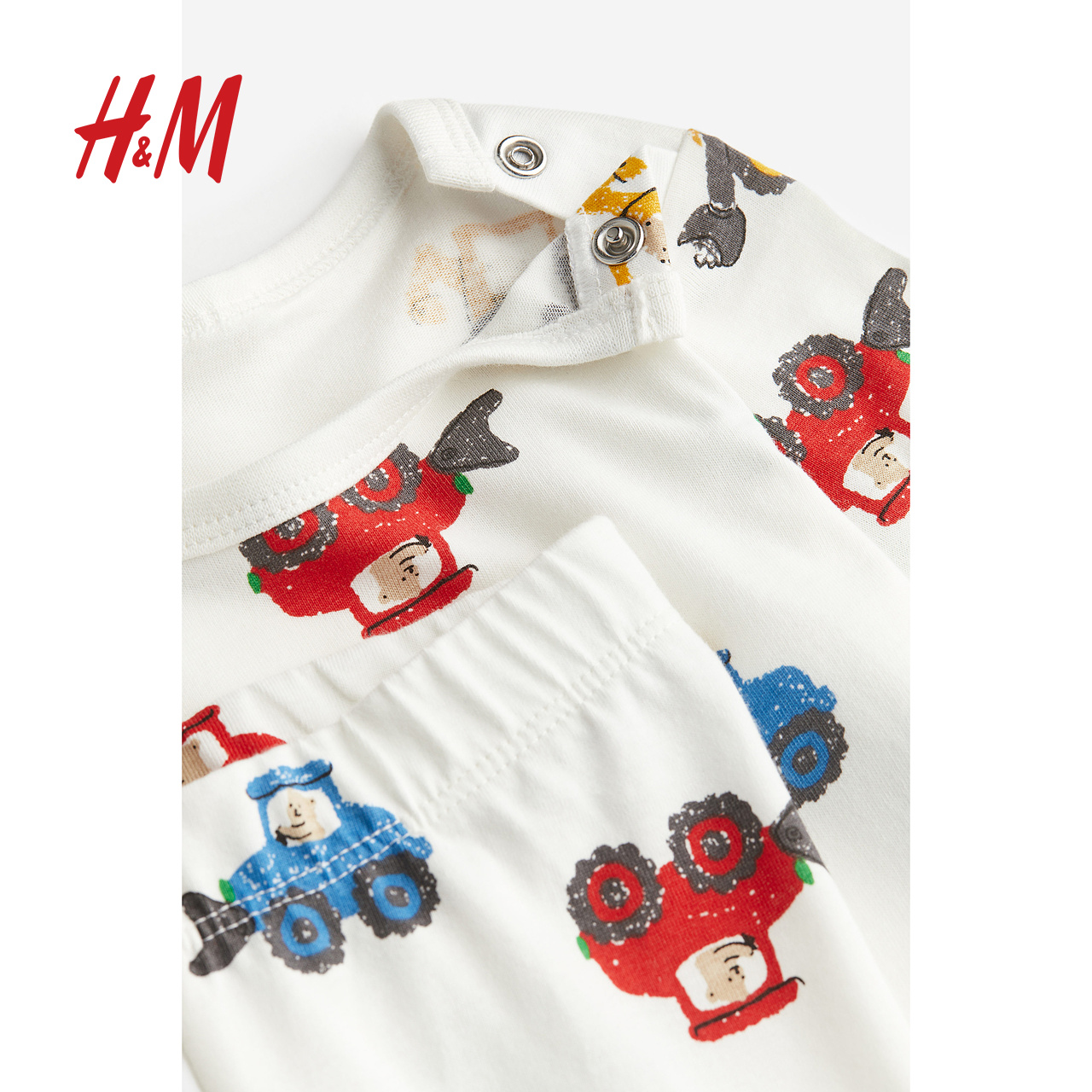 睡衣睡裤 HM童装 动物印花棉质长袖 秋季 1143149 男婴女婴套装