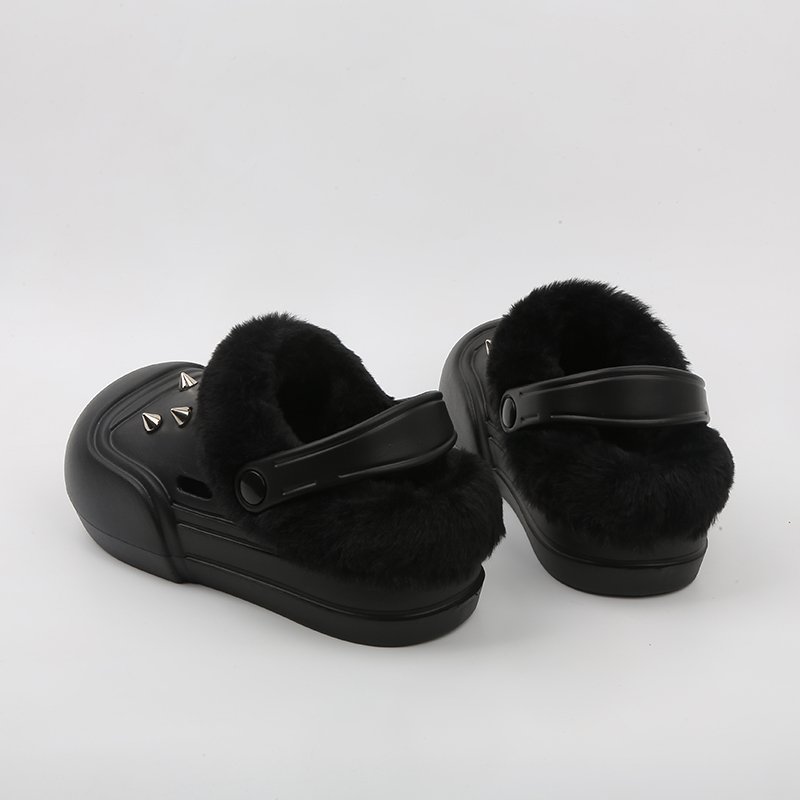 66001 秋冬加毛包头半拖鞋 DevoLife软木拖鞋 女加绒保暖休闲毛毛鞋