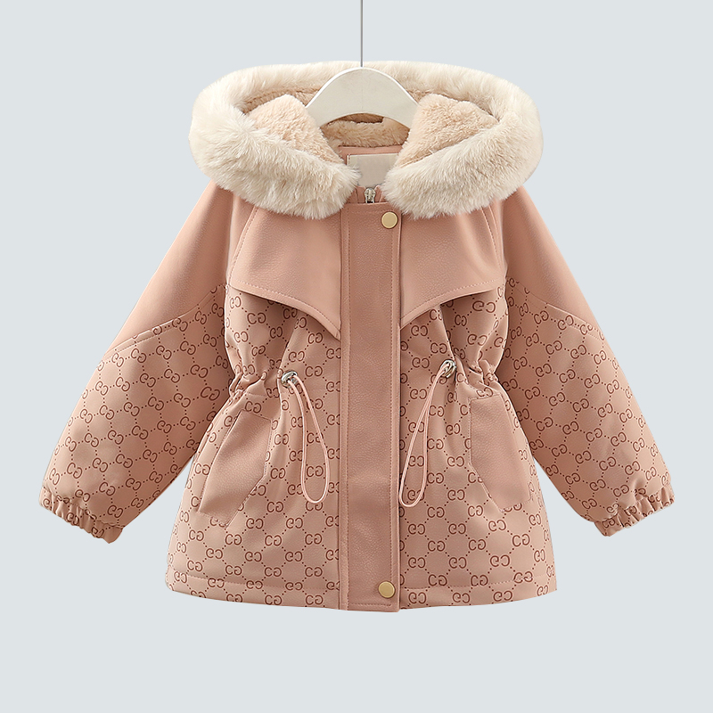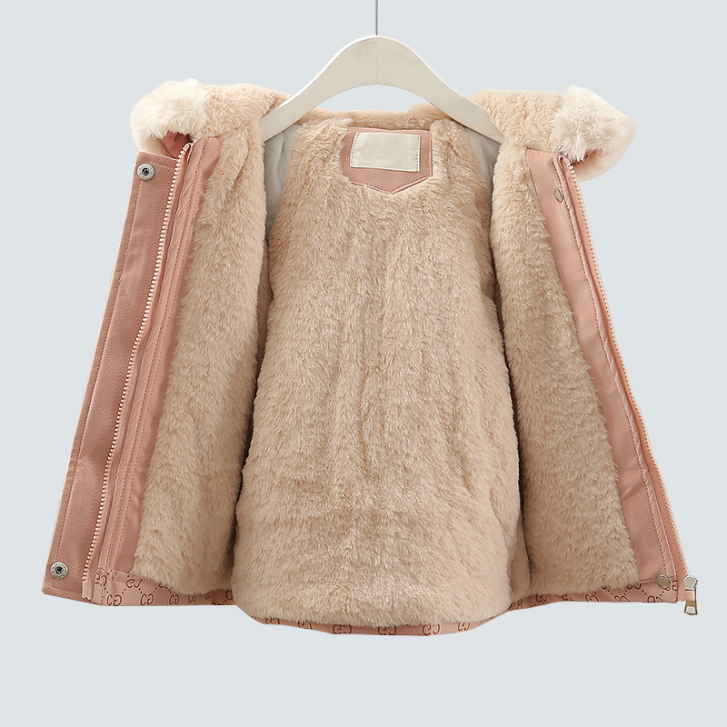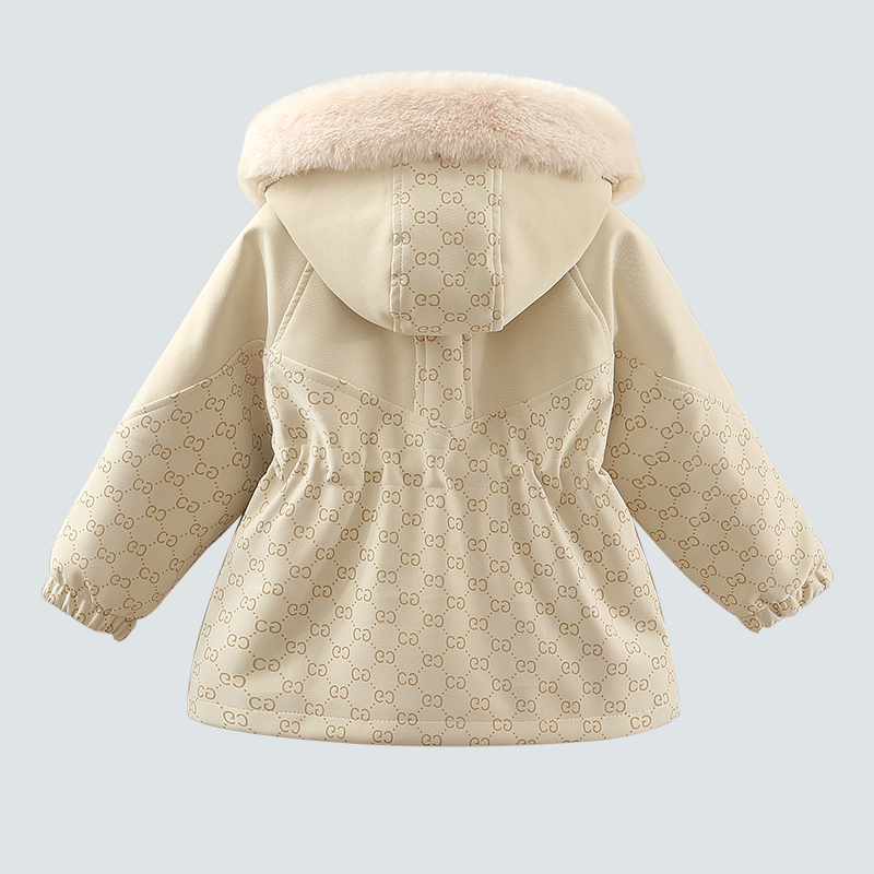 仿兔毛夹棉厚外套派克服 儿童棉服中长款 女童冬装 加绒皮衣2025新款