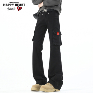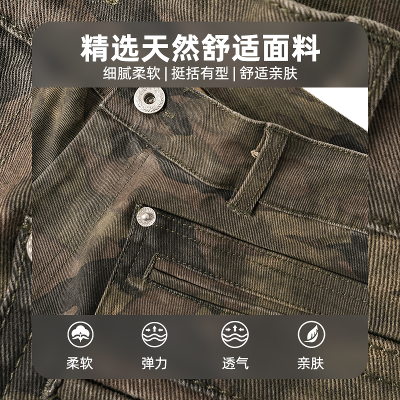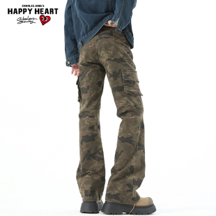 裤 迷彩多口袋工装 男女春秋季 修身 查尔斯桃心 显瘦微喇牛仔裤 美式