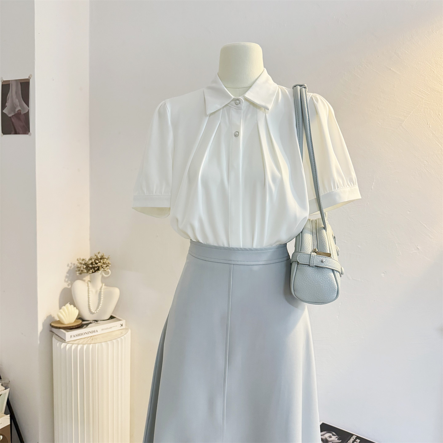 设计感气质职业通勤衬衣垂感正装 女2025夏季 上衣 衬衫 白色翻领短袖