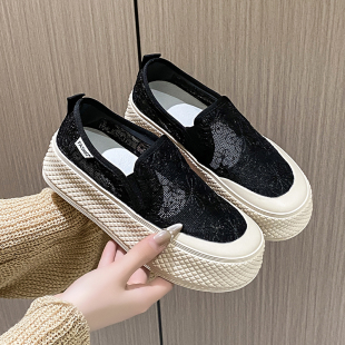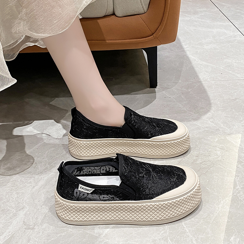 韩版 休闲鞋 简约蕾丝透气厚底渔夫鞋 外穿百搭单鞋 舒适 女款 2025新款
