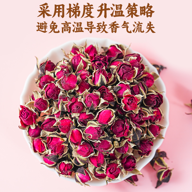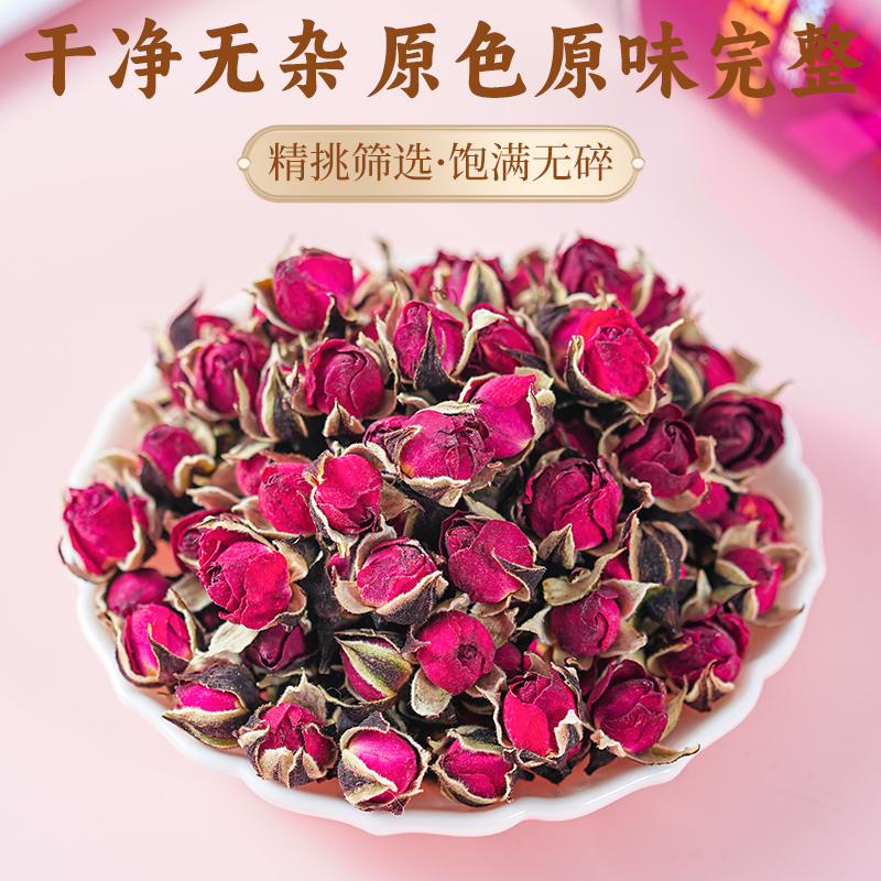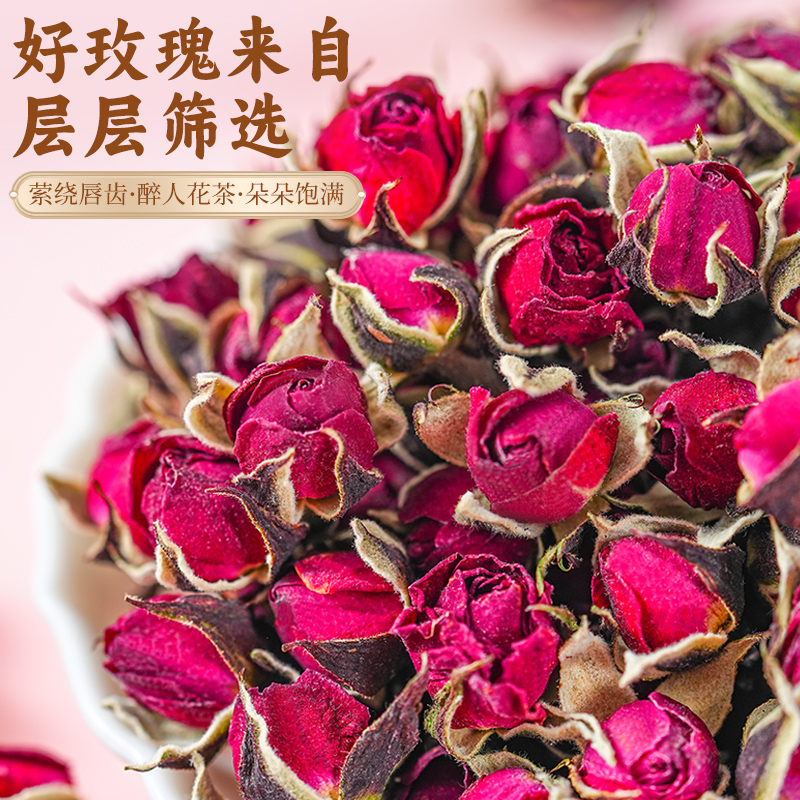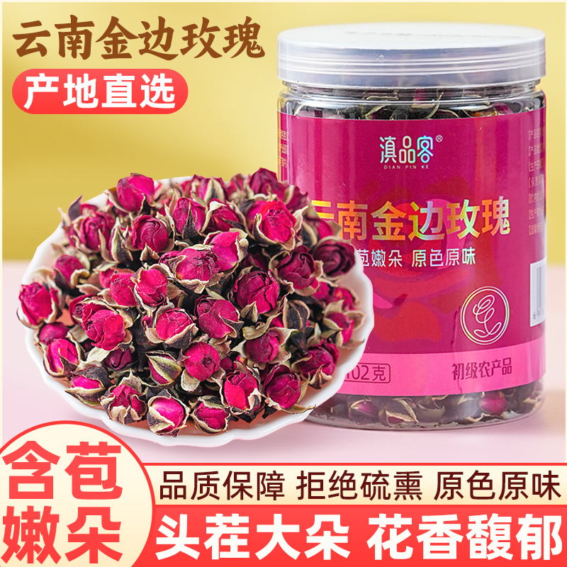 云南金边玫瑰新货食用重瓣玫瑰花干精选天然花蕾花草茶泡水茶瓶装