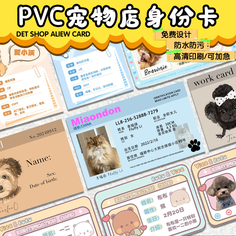 PVC宠物身份卡定制DIY卡通创意防水id卡片猫咪狗狗自印名片卡定做