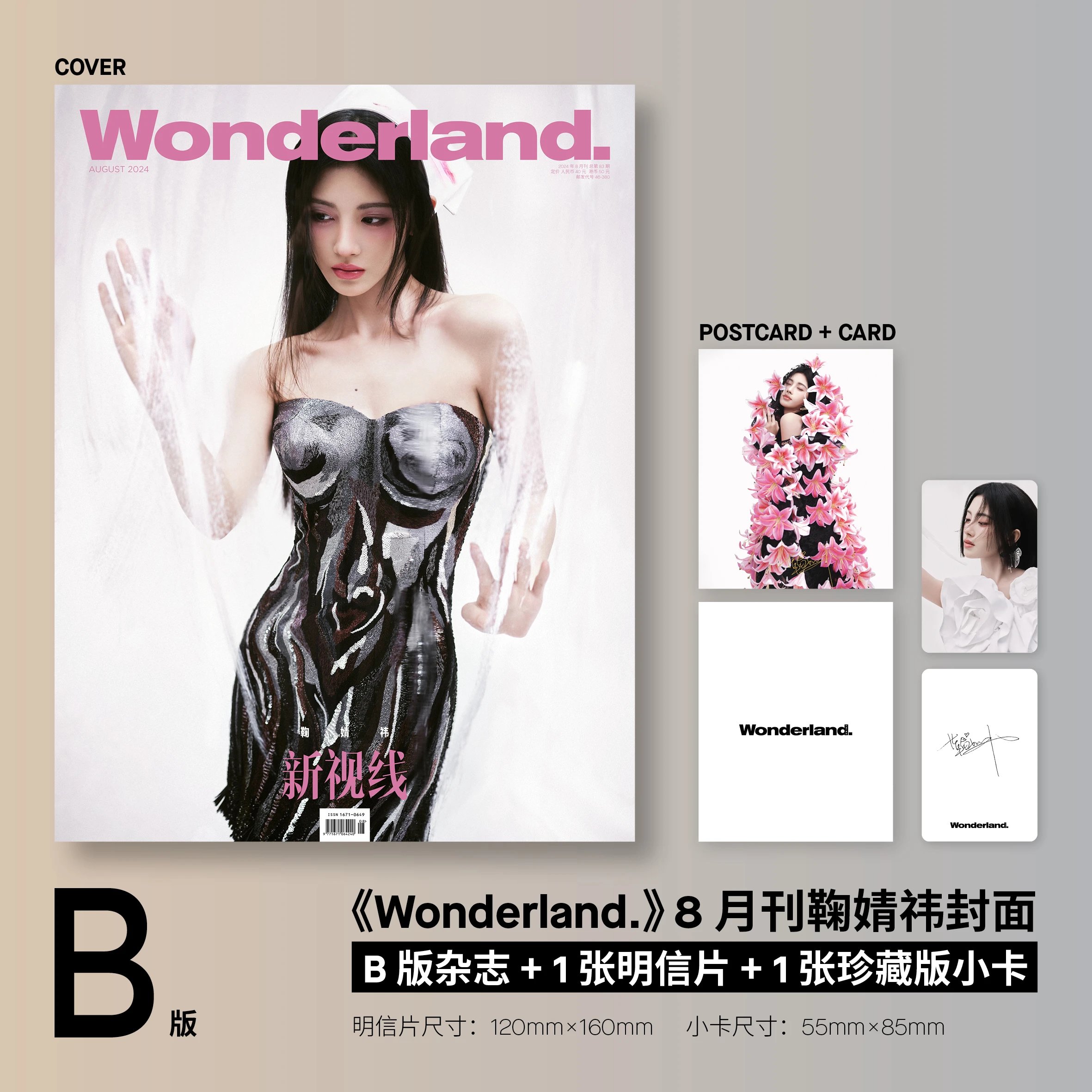 新视线Wonderland杂志2024年八 1张隐藏小卡 鞠婧祎杂志时尚 2张小卡 2张明信片 8月 鞠婧祎官方C款 2025年6月 COSMO 官方版