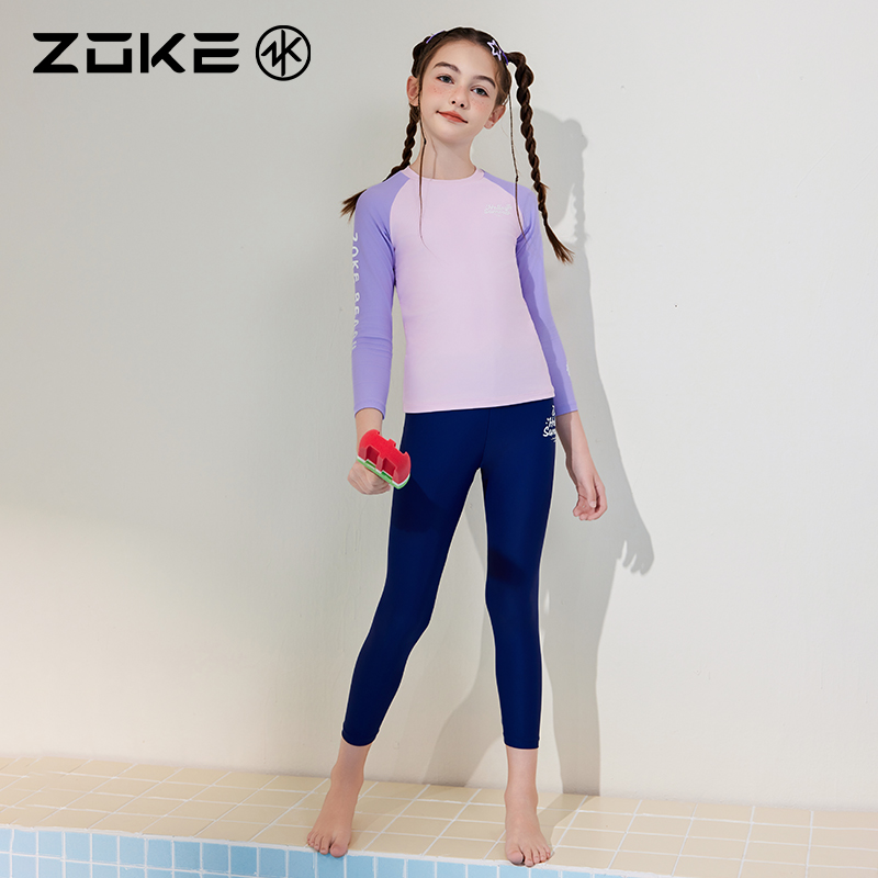 女孩度假戏水沙滩泳装 洲克儿童防晒泳衣分体长袖 速干zoke男童长裤