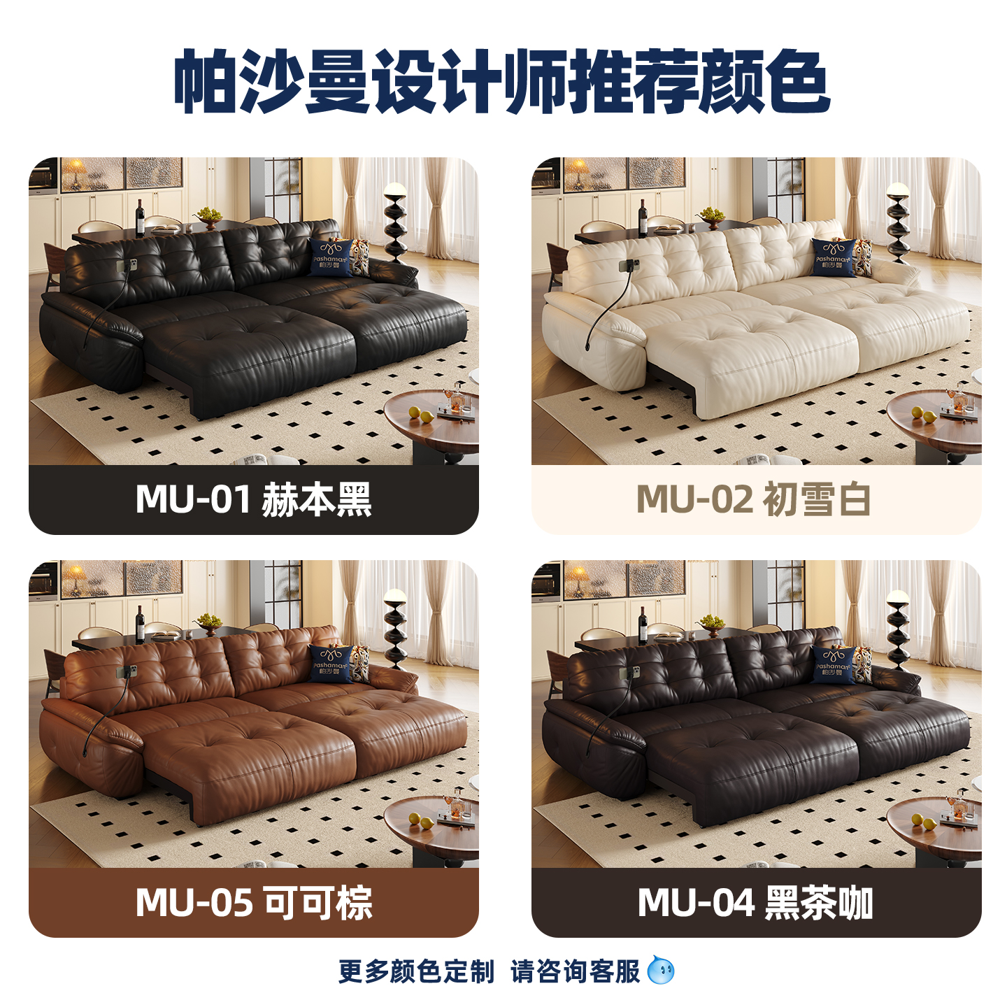 政府补贴帕沙曼云朵真皮电动沙发床意式 复古风客厅书房多功能伸缩