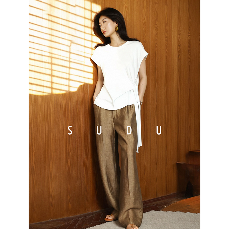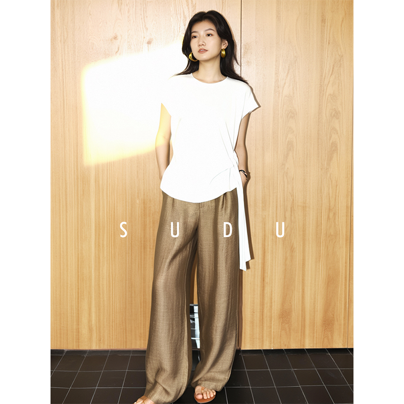 上衣女装 南法假日不规则圆领设计感飘带短袖 解构主义 SUDU素都