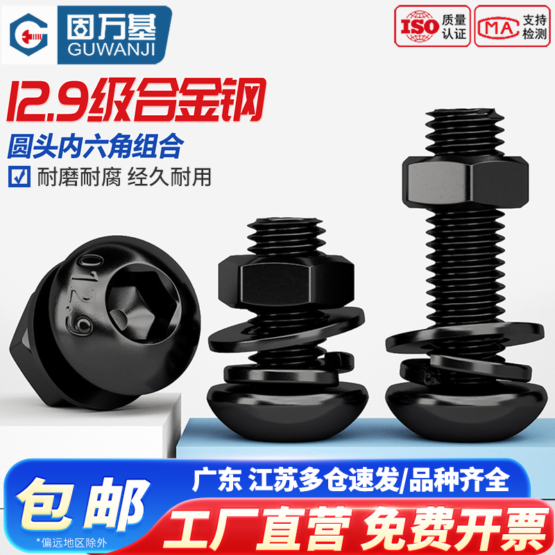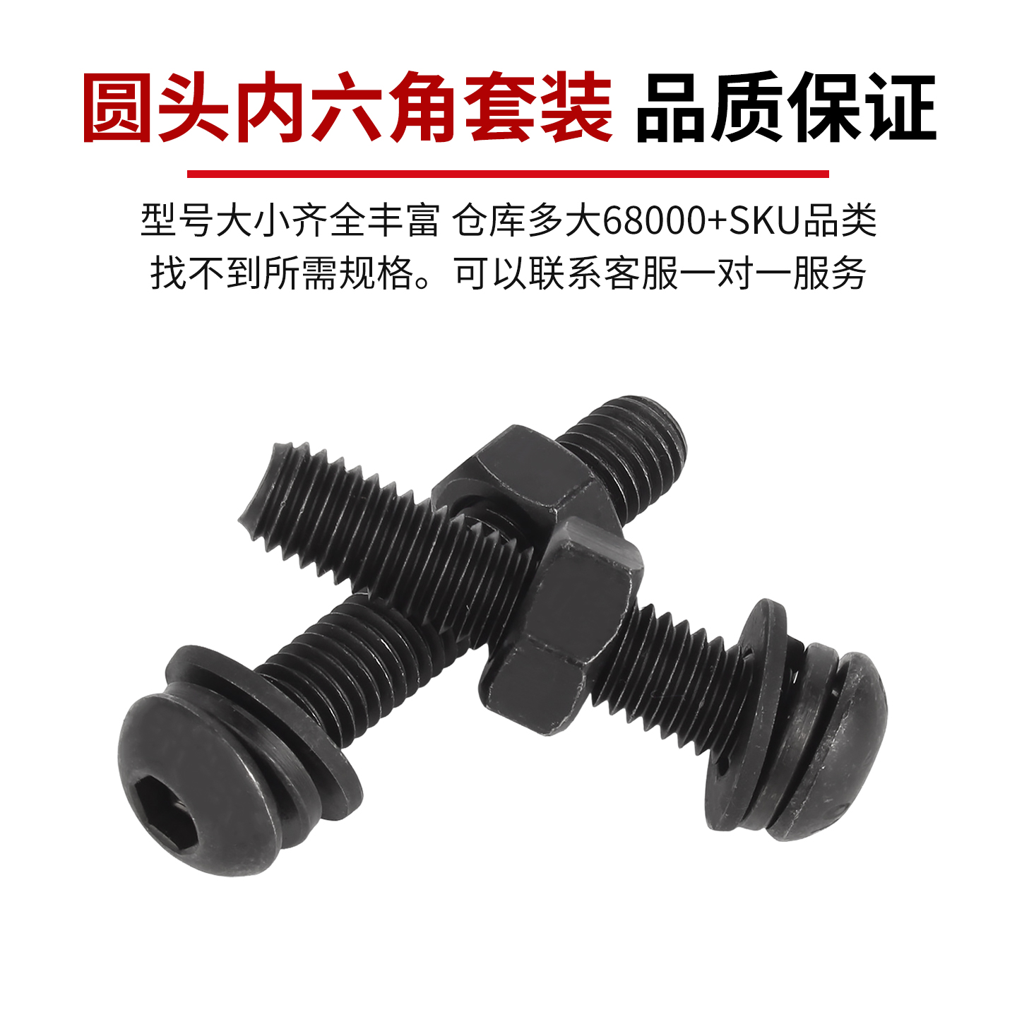 12.9级高强度圆头内六角螺丝螺母套装 圆杯螺栓盘头螺钉平弹垫组合