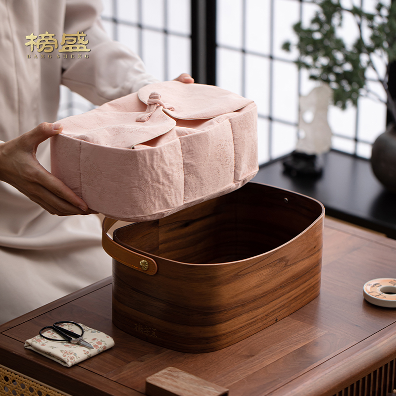 榜盛实木茶具收纳包茶空间摆件软装 饰杂物盒野餐篮茶人包收纳袋