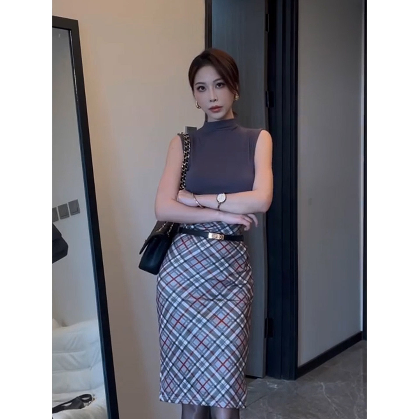 性感格纹包臀裙套装 半高领背心女25年夏季 微胖御姐风气质无袖 XZY