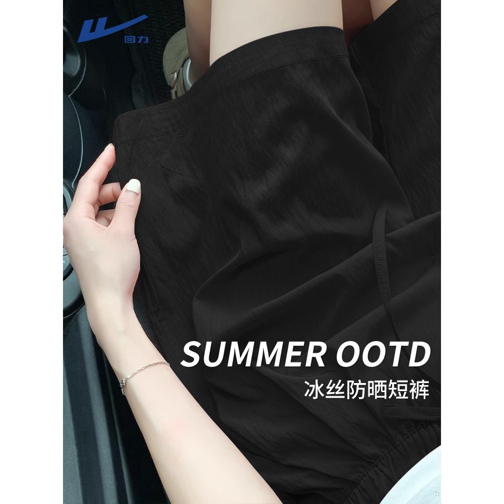 女装 回力冰丝直筒短裤 胖mm大码 防晒宽松显瘦运动裤 女2025新夏季