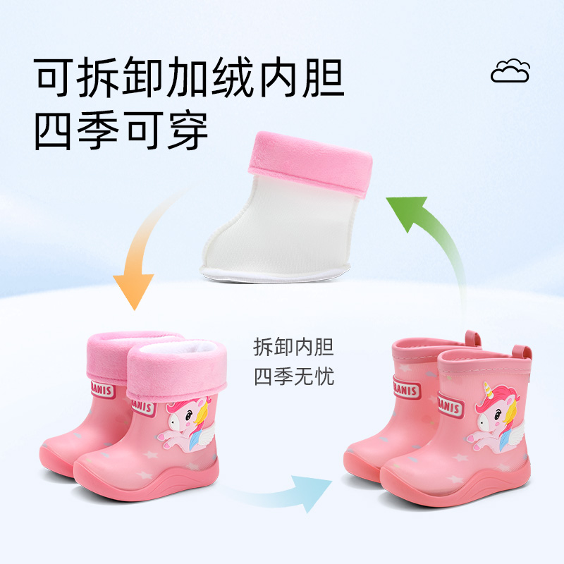 可拆卸内里男童雨靴女宝踩水雨鞋 款 子防滑 四季 泰兰尼斯儿童雨鞋