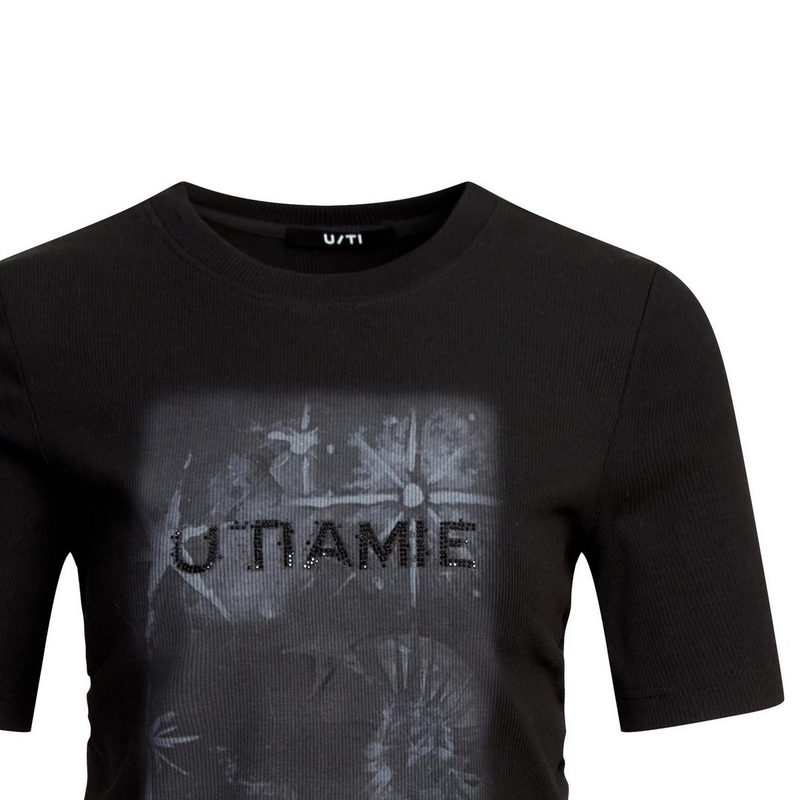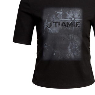 黑色印花圆领T恤 TI尤缇2025秋季 通勤修身 休闲短袖 专柜新款 女装