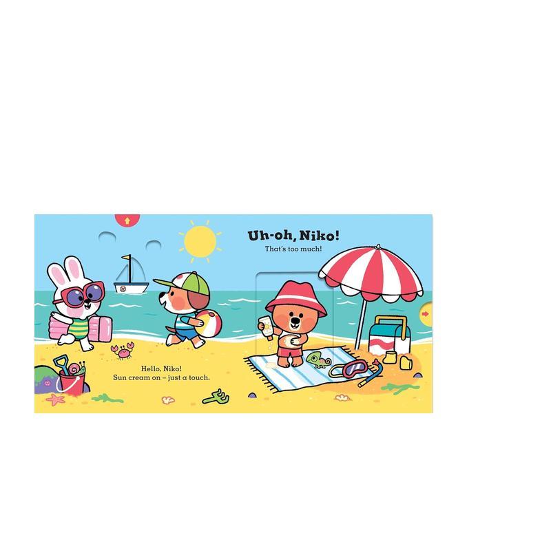 Beach 英文儿童趣味 海滩 Niko 小熊尼可 抽拉翻翻机关书 原版 The 预售
