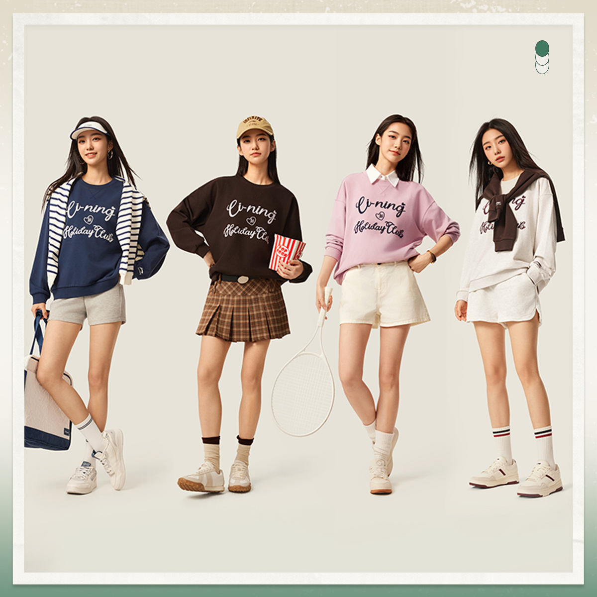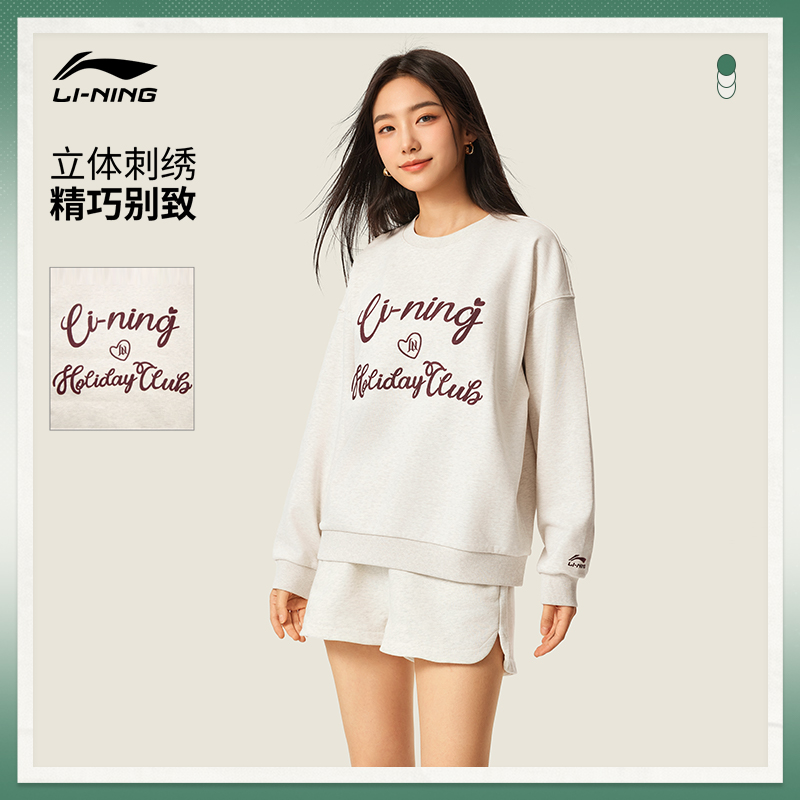 圆领长袖 女装 松弛感内搭上衣运动服女 2025新款 李宁网球卫衣女秋季