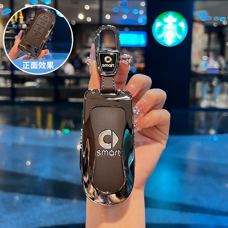 适用奔驰smart精灵5号钥匙套专用斯玛特精灵 5汽车金属保护包扣壳